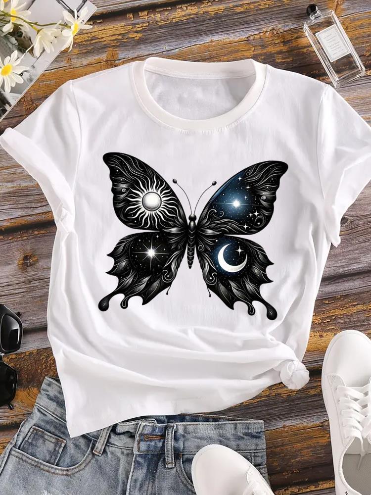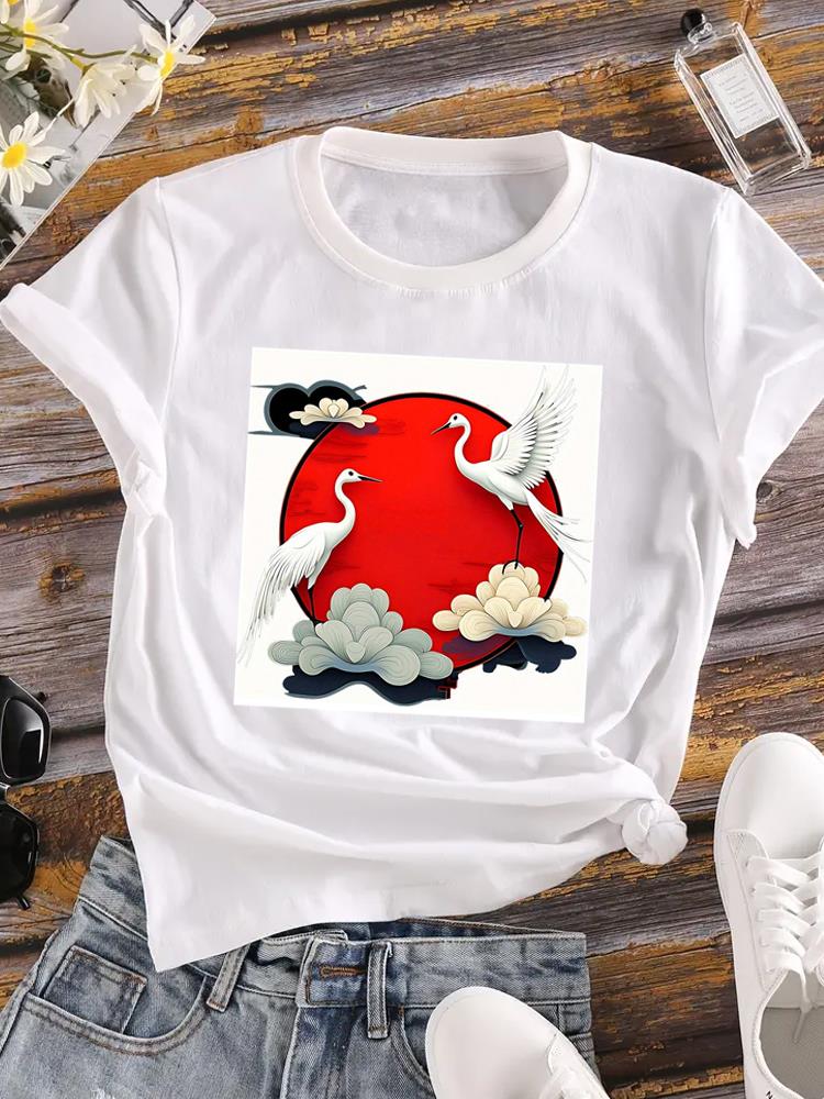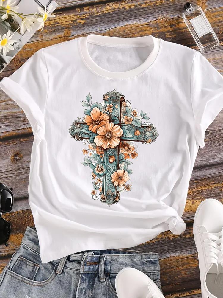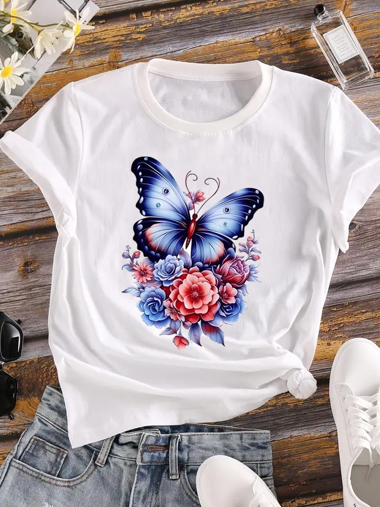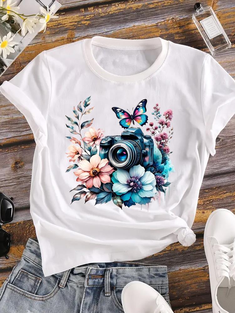 (Азиатский размер) Женская футболка Верхняя одежда Повседневная Цветочная мода прекрасный акварельный стиль Футболка с коротким рукавом Принт Женская графическая футболка