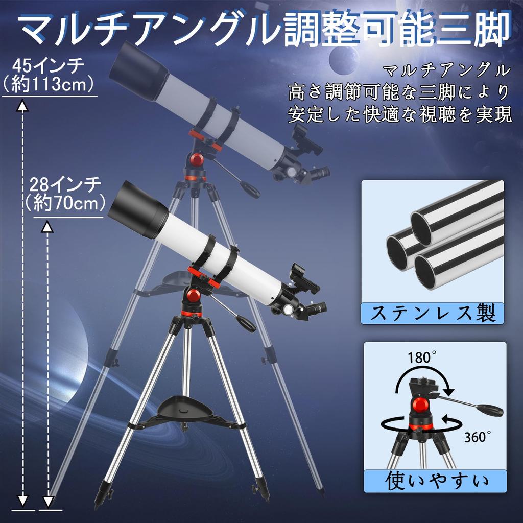 【Устойчивый штатив】Наш телескоп для взрослых оснащен устойчивым штативом.. Этот штатив изготовлен из толстой нержавеющей стали, которая более устойчива, ее нелегко трясти и сломать.. Регулируемый штатив может выдвигаться от 28 до 45 дюймов, подходит как для взрослых, так и для детей.