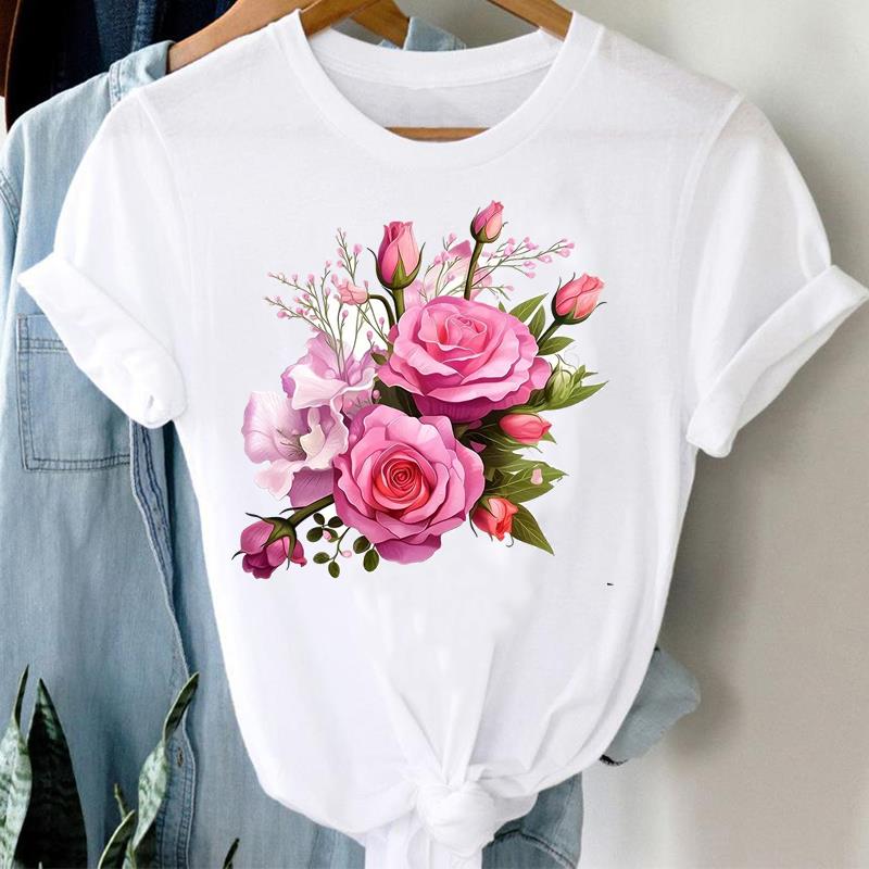 (Азиатский размер) Прекрасный цветочный тренд Принт Женская футболка Верхняя одежда Повседневная Цветочная мода Футболка с коротким рукавом Женские графические футболки — купить товар онлайн с бесплатной доставкой по всему миру!