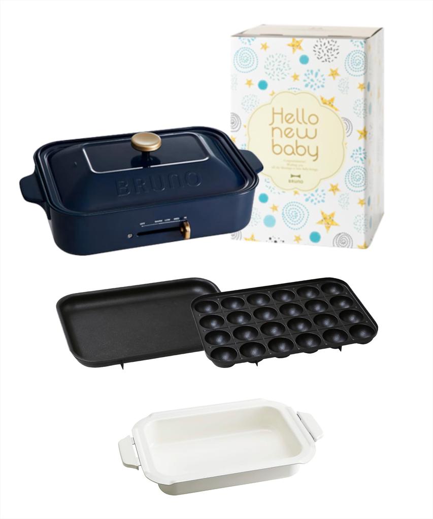 Компактная плита BRUNO Bruno, основной блок, 3 типа плит, керамическая кастрюля с покрытием, детский подарочный чехол Yakiniku, книга рецептов в комплекте, темно-синий, стильный, милый.
