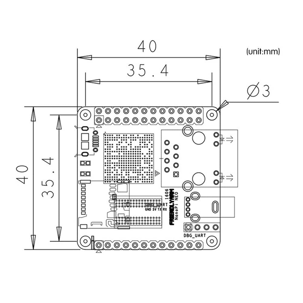Xja ЦП: модель: Количество ядер Allwinner H3: Частота четырехъядерного процессора: 4*-A7 Макс. Память 1,2 ГГц: RAM: 512 МБ памяти: слот: До 128 ГБ для внешнего хранилища*1: Ethernet: 10/100M Ethernet-аудио: Порт аудиовхода/выхода: 5-контактный разъем USB с шагом контактов 2,0 мм: -USB * 1: -USB 2.0, OTG и вход питания, тип AUSB Host: 2.0 Тип A*1, штырьковый разъем 2,54 мм*2 штырьковый разъем: GPIO: Шаг 2,54 мм, 36 контактов. Последовательные отладочные порты, включая UART, SPI, I2C, IO и т. д.: 4-контактный разъем с шагом 2,54 мм. Порты аудиовхода/выхода.: Светодиодный разъем с шагом 2,0 мм и 5 контактами: Индикатор питания (красный) * 1; Системный светодиод (зеленый) * 1 Другое: Рабочая Температура: -20℃~70℃ Источник питания: Размеры Micro USB DC 5V/2A: 40 x 40 мм Материал: Печатная плата + металлический цвет: черный