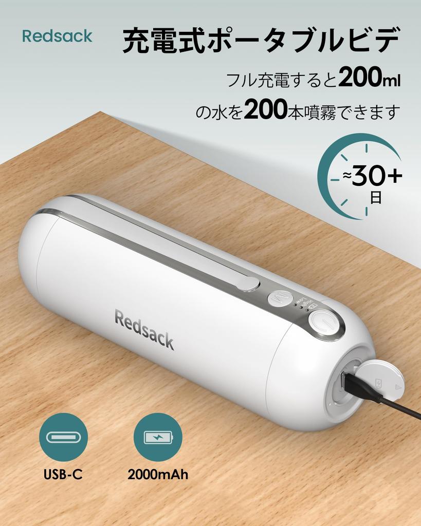 [Перезаряжаемое биде] Электробиде Redsack оснащено встроенным перезаряжаемым литиевым аккумулятором емкостью 2000 мАч, который можно заряжать с помощью кабеля USB-C и использовать 300 раз, поэтому вам не придется беспокоиться о разрядке аккумулятора во время путешествий или выхода на улицу.