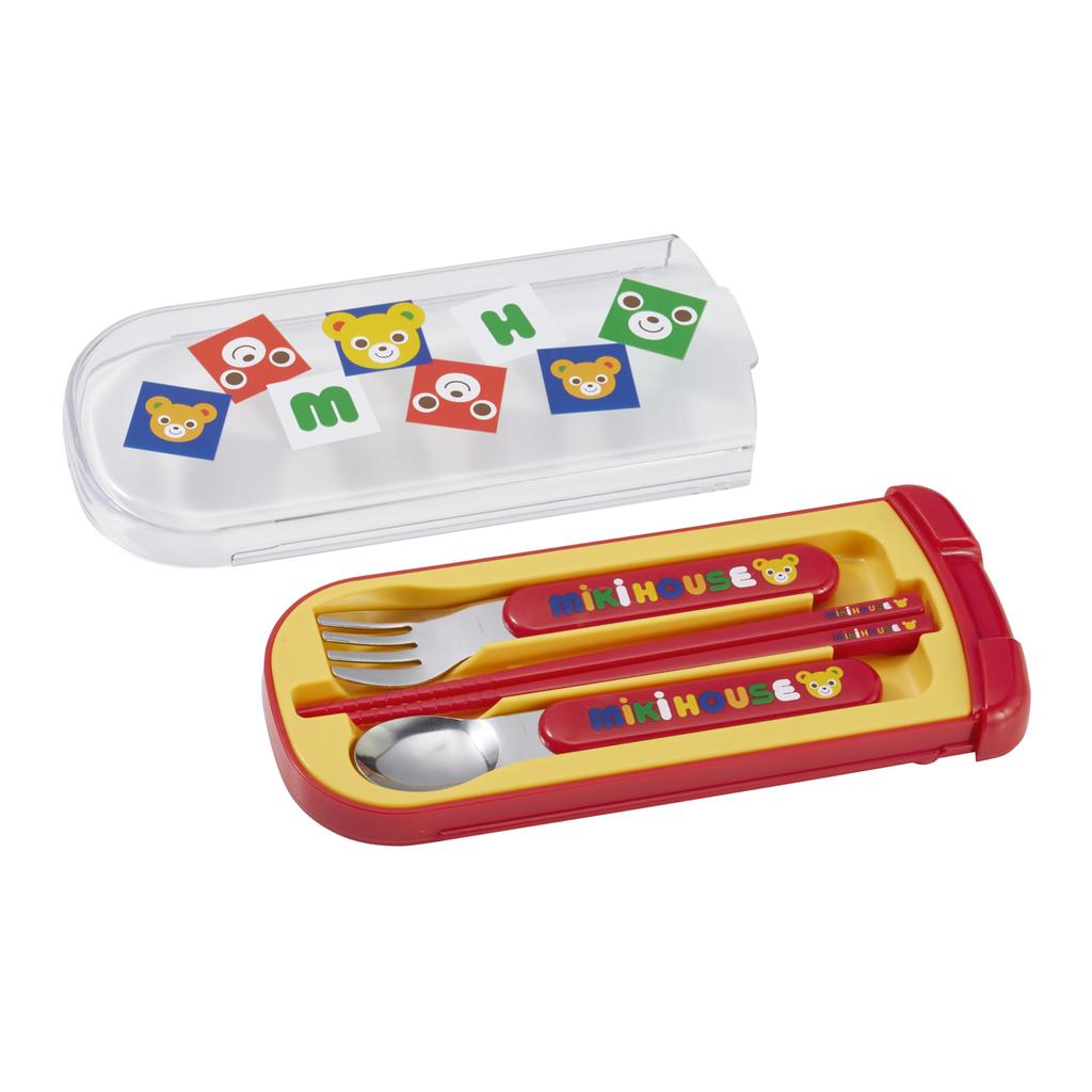 Трио Сделано в посудомоечной машине Детская разноцветная [MIKI HOUSE] Набор, палочки для еды, ложка, вилка, логотип, медведь, кролик, Япония, сейф, мальчики, девочки, младенцы, дети,