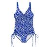 - Регулируемый плечевой ремень, эластичная вставка, сборка по бокам, мягкие чашечки без косточек, боковые швы, завязки, утяжка на животе.