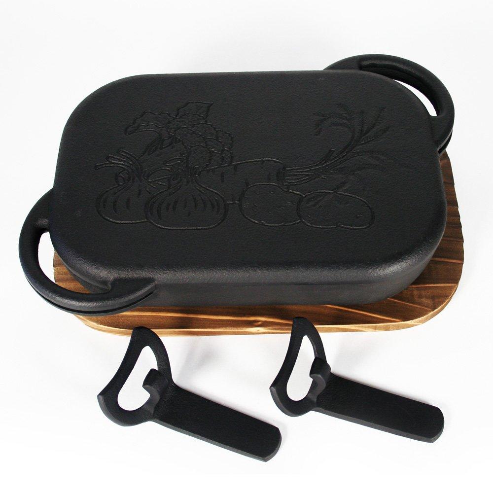 Сделано в Японии. Деревянная подставка Nanbu Tekki и 2 сковороды для гриля IH Stove Grill Oven, совместимая с духовкой, сковорода для гриля "Bake Pan" (с ручками) Совместимый/Газовый