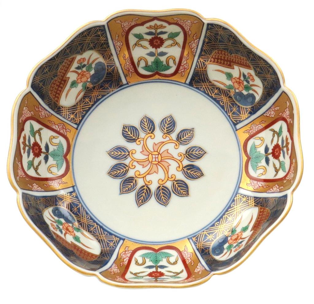 Керамика Ишимару, Хасами, печь для обжига Ринкуро, великолепная старинная чаша для хранения в стиле Имари, окно с цветочной росписью (Фарфор ХАСАМИ) 009089-656
