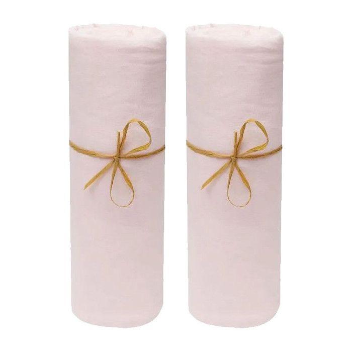 Lot de 2 Draps housse lit bébé 60 x 120 cm / 100% coton / 57 fils/cm² - 1 Rose + 1 Rose