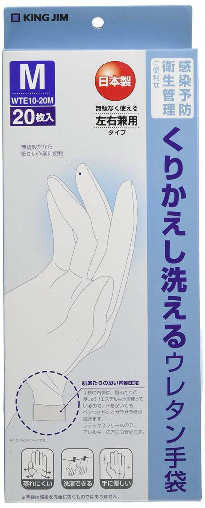Перчатки из уретана King Jim многоразовые и моющиеся, размер M, 20 штук, белые, WTE10-20M