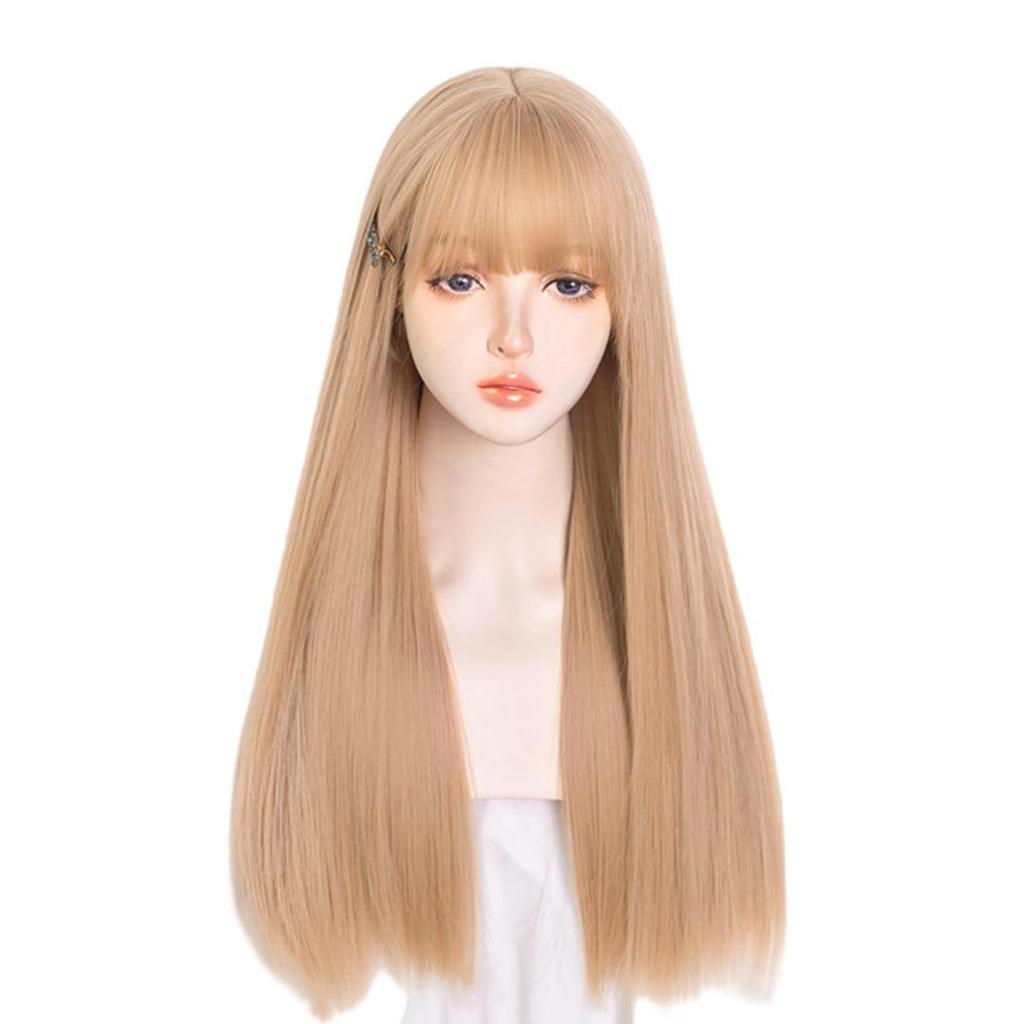 Парик Akixen Длинный прямой золотой парик Белое золото Стиль Харадзюку Маленькое лицо Термостойкая сетка для косплея Модный костюм для маскировки на Хэллоуин