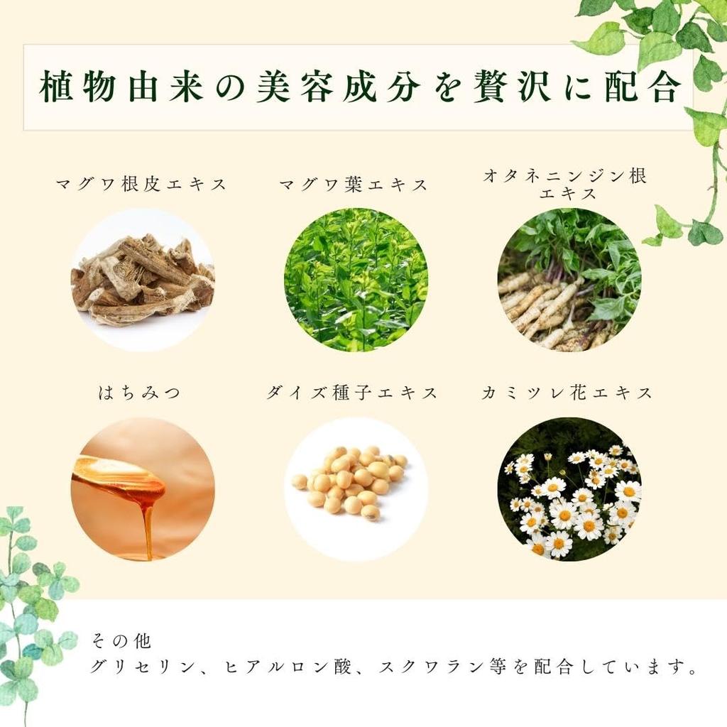 Поскольку мы хотим, чтобы вы использовали его для ухода за кожей каждый день, мы не используем никаких дополнительных ингредиентов, и это мыло для лица без добавок изготовлено из натуральных масел и жиров.. Синтетическое поверхностно-активное вещество на основе нефти «не используется», парабен (консервант) "не используется", синтетический ароматизатор "не используется", синтетический краситель "не используется", минеральное масло "не используется". Его можно безопасно использовать детям и людям с чувствительной кожей.. Содержит растительные увлажняющие и косметические ингредиенты [экстракт листьев магвы, экстракт корня женьшеня обыкновенного, экстракт цветков ромашки, экстракт коры корня магвы, экстракт семян сои, сквалан, экстракт корня солодки, экстракт семян адлая, мед].