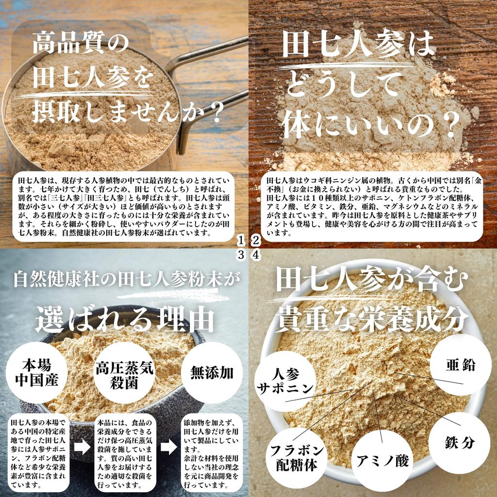 [О женьшене Denshichi] Женьшень Denshichi — это растение, принадлежащее к семейству аралиевых, богатое более чем 10 видами сапонинов, кетоновых флавоновых гликозидов, аминокислот, витаминов и минералов.. Он также известен как женьшень, а также как ингредиент китайской фитотерапии и лекарственного сырья.. В настоящее время доступен широкий ассортимент продукции, включая добавки, такие как таблетки, чай из женьшеня и органический женьшень.. В настоящее время его используют в самых разных целях, таких как красота, здоровье, диета и пищевые добавки, и он приобретает все большую популярность благодаря сарафанному радио как среди мужчин, так и среди женщин.. [О продукте] Этот продукт представляет собой простой в использовании порошок, изготовленный из высококачественного женьшеня и не содержащий добавок. (100% чистый). Рекомендуется в качестве ежедневной добавки.. Он также привлекает внимание как диетическая и «медленная» пища для вегетарианцев. (веганы, веганы, вегетарианцы). Попробуйте этот продукт.. [Как использовать] Добавьте от 1 до 3 г. (1-2 чайные ложки) в день на такие напитки, как вода, теплая вода или сок. Если вы пьете йогурт, смузи, зеленые соки или протеин, добавьте их в них и перемешайте блендером.