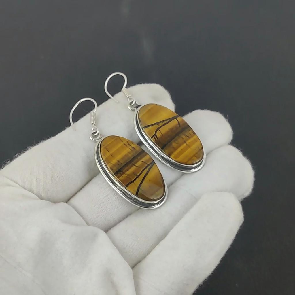 Серьги из натурального тигрового глаза, антикварные серьги из стерлингового серебра 925 пробы, серьги-подвески из серебра в стиле бохо, подарки для ваты, подарки для нее