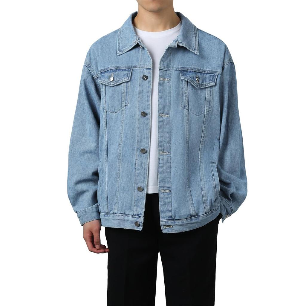 Джинсовая легкая повседневная повседневная лацкан длинная однотонная свободная большая [FOMANSH] куртка, куртка, мужская куртка, мужской код, шея, рукав, цвет, стильный, размер,