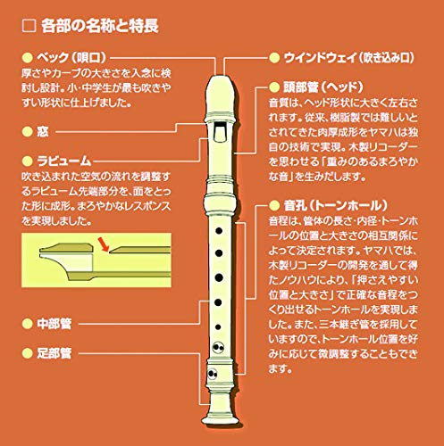 YAMAHA Блокфлейта-сопрано из АБС-смолы в немецком стиле Включает в себя блокфлейту для чистки пальцев и тканевый чехол. Улучшает контроль дыхания, добавляя определенную