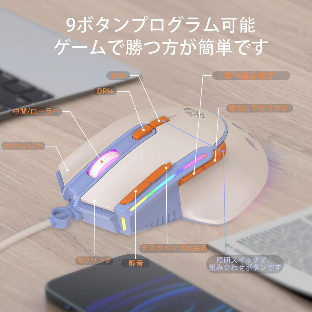 【9 программируемых кнопок】Кабельная игровая мышь M2 MAMBASNAKE оснащена 9 программируемыми кнопками: Левая кнопка, Правая кнопка, Вперед, Назад, Кнопка DPI, Кнопка переключения подсветки, Быстрая стрельба, Отобразить рабочий стол, Браузер, Колесико. 9 программируемых клавиш, отвечают вашим игровым потребностям и позволяют быстро переключаться между ними во время игры.