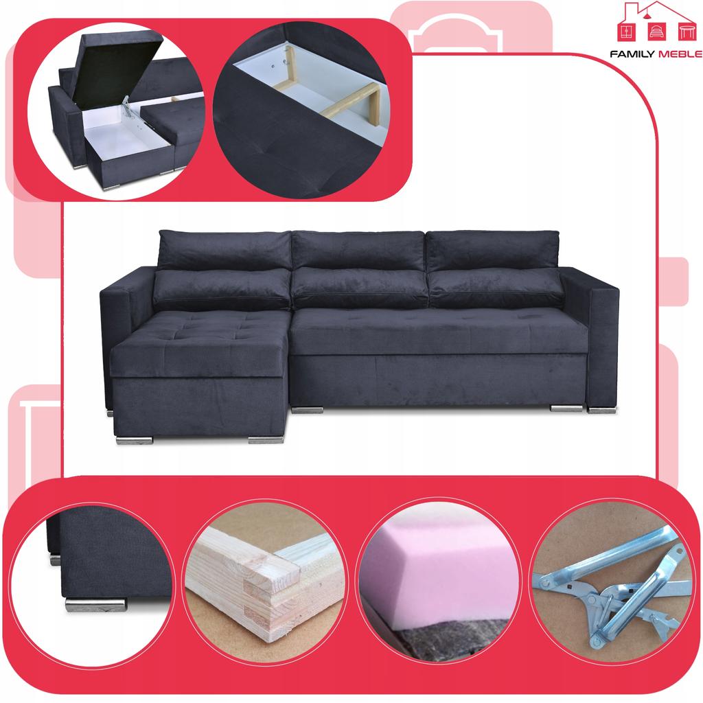 Narożnik Varius rozkładany z funkcją spania Family meble rogówka szary welur