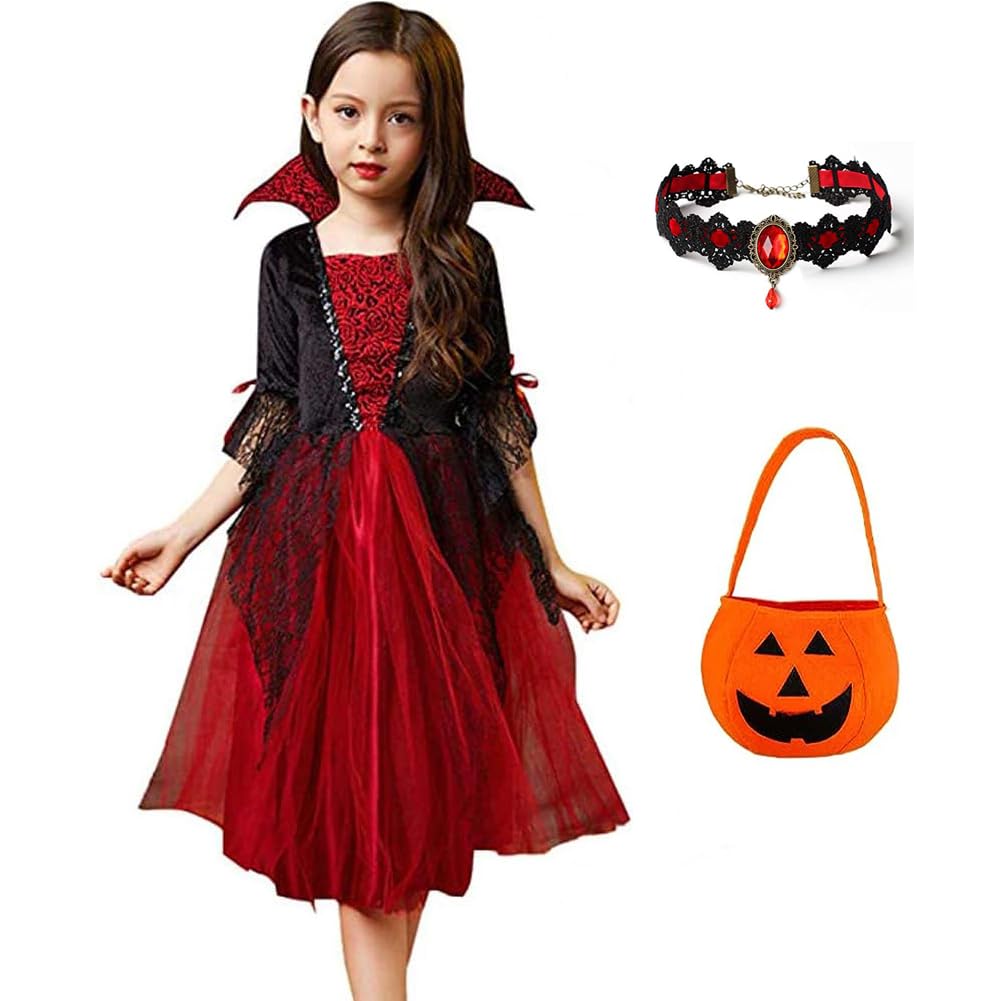 [Содержимое набора] Роскошный набор из 3 предметов: Платье + Ожерелье + Сумка-Тыква Одежда вампира с вампирским дизайном для костюмов на Хэллоуин. Костюм вампира — классический костюм, который может понравиться каждому.. Если вы с друзьями, вы будете чувствовать себя более сплоченно и получите больше удовольствия.