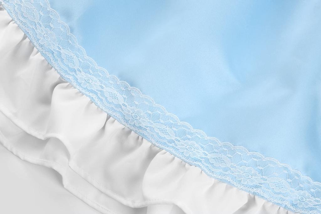 Платье выполнено из блестящего атласного материала, который придает ему роскошный вид, украшено лентой на груди, кружевом по подолу и пышными рукавами.. Дополните образ белоснежным фартуком и черной повязкой на голову с большой лентой, чтобы создать сказочный образ.. Девушка, которая теряется в мире.