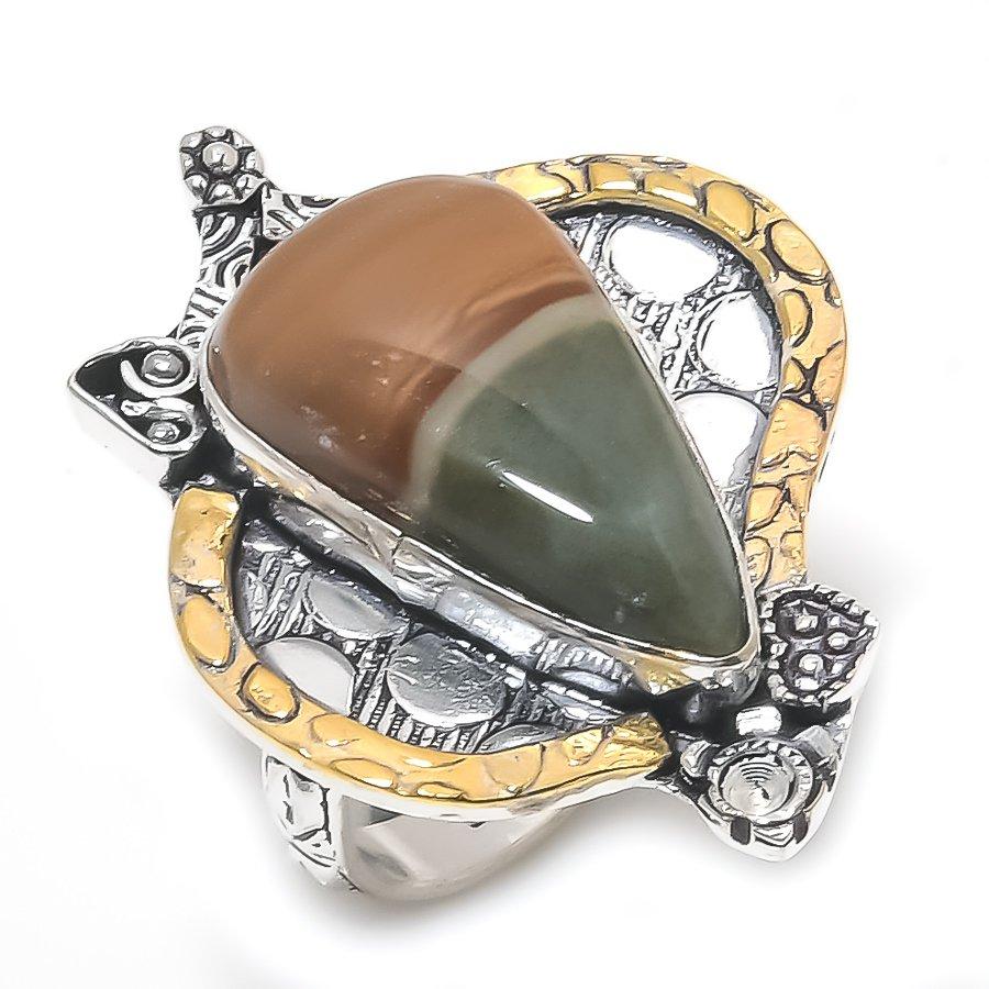 Кремень Ручная работа Серебро 925 пробы Двухцветное Подарочное кольцо Размер 8 F2q05
