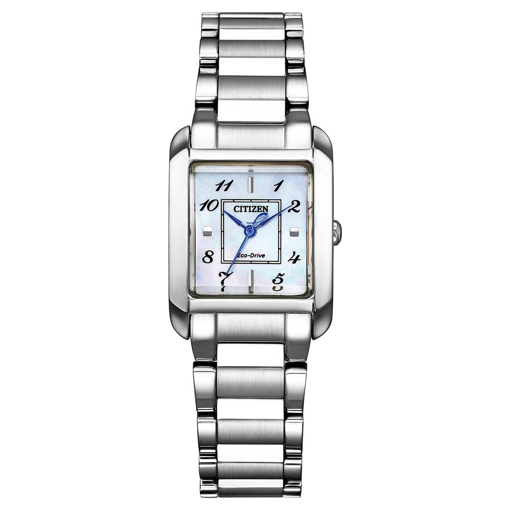 Водонепроницаемые серебряные часы SQUARE Collection White Pearl [Citizen] Eco-Drive EW5600-87D женские — купить товар онлайн с бесплатной доставкой по всему миру!