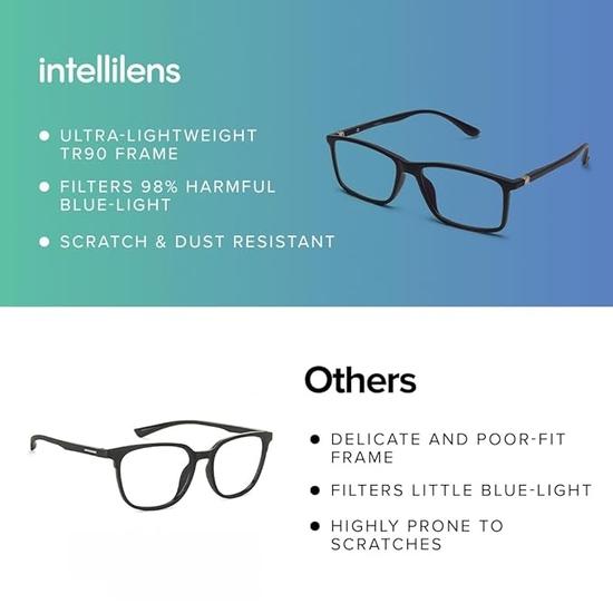 Очки Intellilens® Square Blue Cut для защиты глаз | Очки с фильтром синего света | Защитные очки от ультрафиолета для мужчин и женщин | Упаковка из 3 шт.