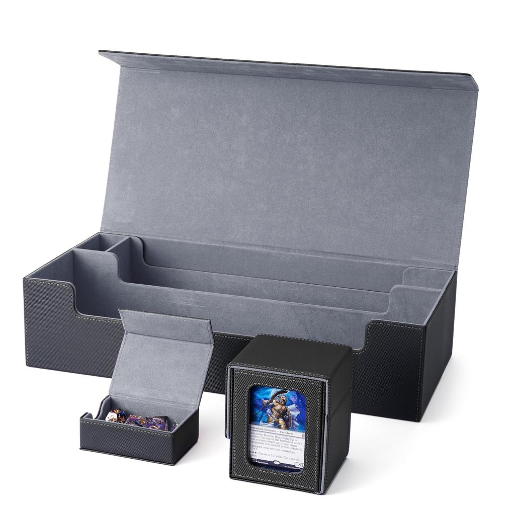 [Незаменимая вещь для коллекционера и идеальный подарок] Эта большая коробка для коллекционных карточек имеет прочный корпус из ударопрочной искусственной кожи и мягкую внутреннюю часть из микрофибры для защиты ваших карт от царапин, а также надежно закрывается с помощью нескольких магнитов.. Имеет структуру и безопасен для переноски. Лучший выбор для игроков в ККИ!