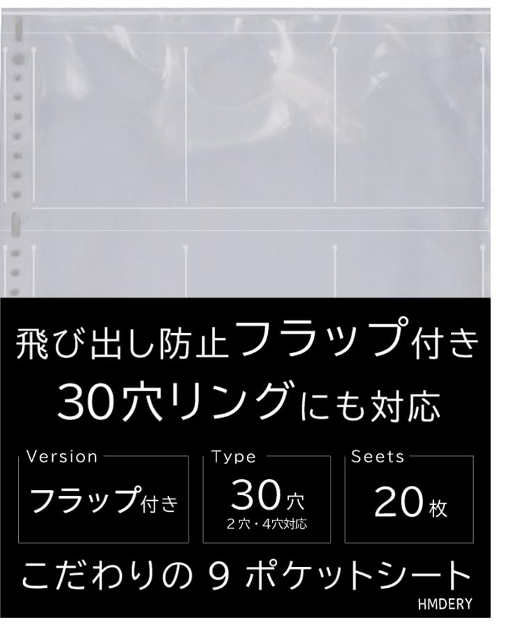 Hamdely 9-карманный лист [с клапаном/совместим с 30 отверстиями, 4 отверстиями, 2 отверстиями] А4 коллекционная карточка размер листа для карточек карман прозрачный лист для файлов сменный лист альбом для хранения сменная 30 отверстий маленькая карточка аркадная карточка 9 карманов защита популярная коллекционная карточка