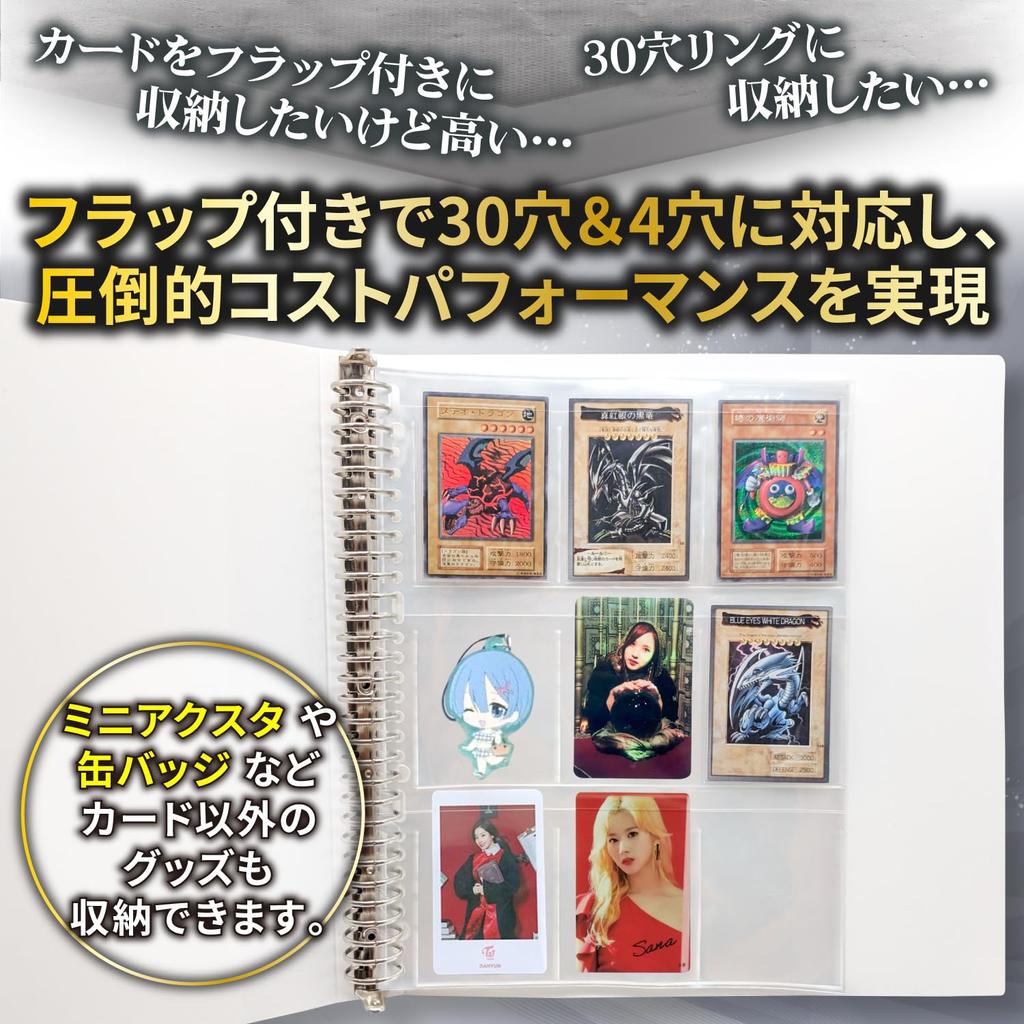 [Для хранения коллекционных карточек и карточных игр] 9-карманный сменный блок с клапаном, который обеспечивает вместимость и прозрачность! Он очень популярен, поскольку защищает вашу коллекцию, позволяя вам еще красивее оценить ваши коллекционные карточки, и при этом экономит ваш кошелек. Вы можете ясно видеть свою драгоценную коллекцию через прозрачную папку! Он как раз нужной толщины и плотности, поэтому его легко перелистывать! Эта простыня с 9 карманами относится к типу простыней с 30 отверстиями. (совместимо с кольцами с 2 и 4 отверстиями) который совместим со многими связующими веществами, поэтому его можно использовать с различными связующими веществами.