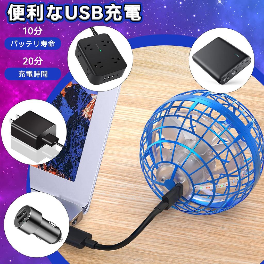 ЛЕГКИЙ И ПОРТАТИВНЫЙ: Этот летающий шар-гироскоп прошел тщательное тестирование и изготовлен из высококачественных материалов, которые мягкие, но прочные.. Отличная устойчивость к падениям, малый вес и гибкость. Вам не нужно беспокоиться о том, что ваш ребенок легко повредит эту игрушку.. Он также автоматически останавливается при столкновении с мебелью и т. д.