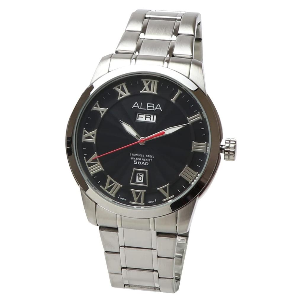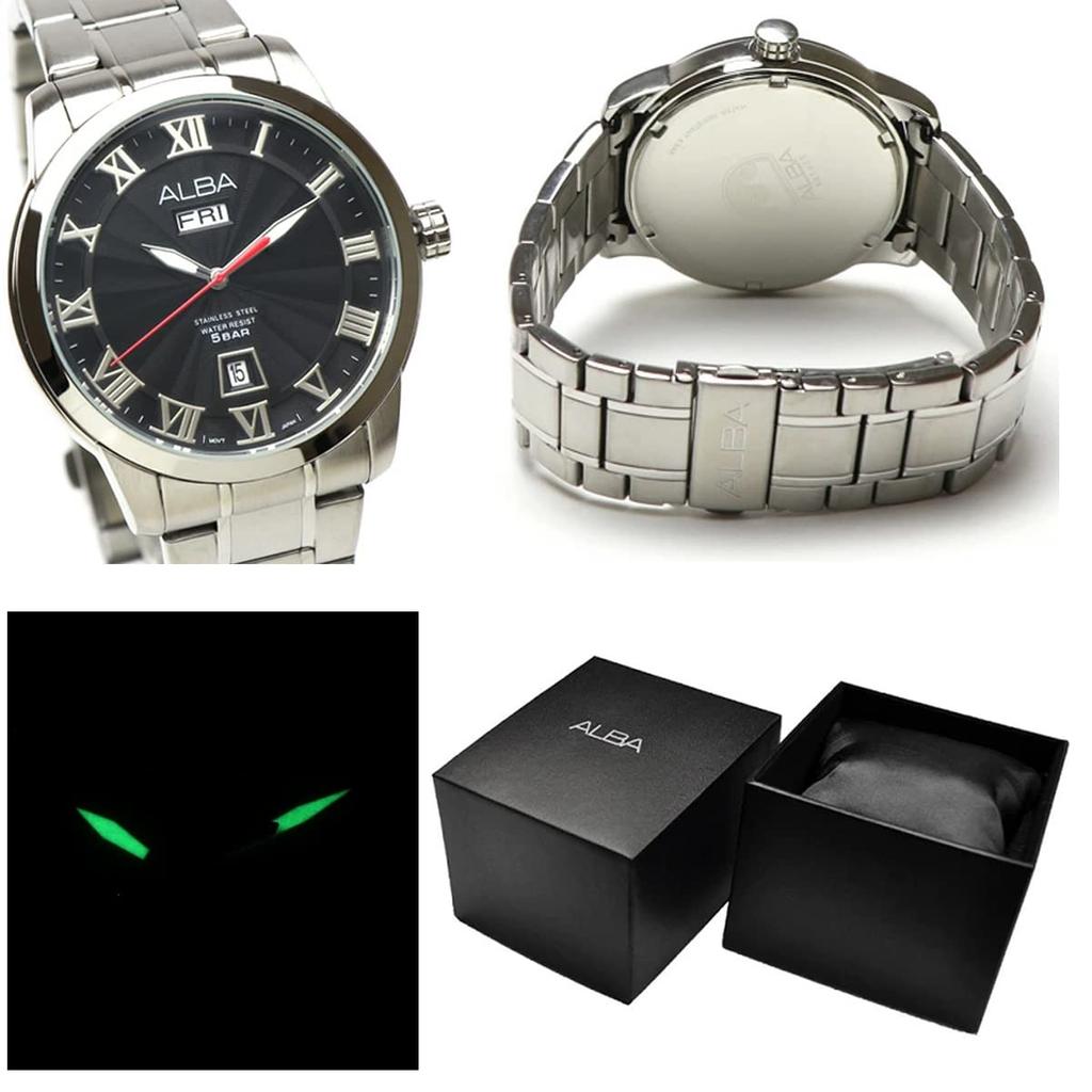 SEIKO ALBA Black Sunbeam AV3273X1 кварцевые часы из нержавеющей стали с аналоговым циферблатом дня недели, даты, дня недели, календаря, мужские часы для мужчин