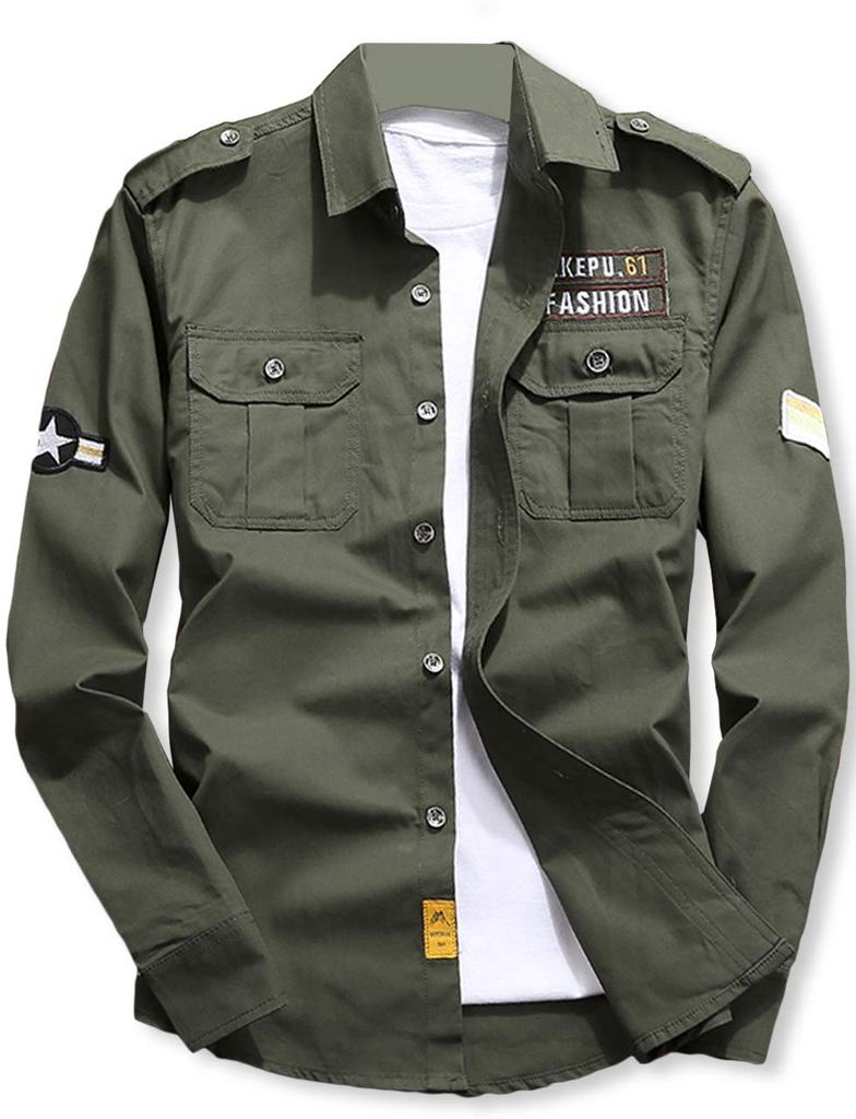 Повседневная армейская куртка из хлопчатобумажной ткани с застежкой на пуговицы спереди. Мальчишеская нашивка и силуэт, которые не оставят равнодушными любителей военного стиля! Материал прочный, но тонкий и в нем легко двигаться, что делает его идеальным вариантом для активного отдыха на свежем воздухе в прохладное время года, например, весной и осенью. Благодаря своему крою он плотно облегает талию, что делает его менее громоздким и придает вам аккуратный вид даже при сочетании со свитшотами, толстовками с капюшоном, рубашками, трикотажными изделиями и т. д.. Его можно использовать в качестве повседневной одежды для прогулок, шопинга, путешествий по стране, международных поездок, свиданий и других ситуаций, когда вы хотите наслаждаться активностью.. Уникальные точечные нашивки на груди, руках и животе подчеркнут ваше мужское очарование и модный и стильный образ.