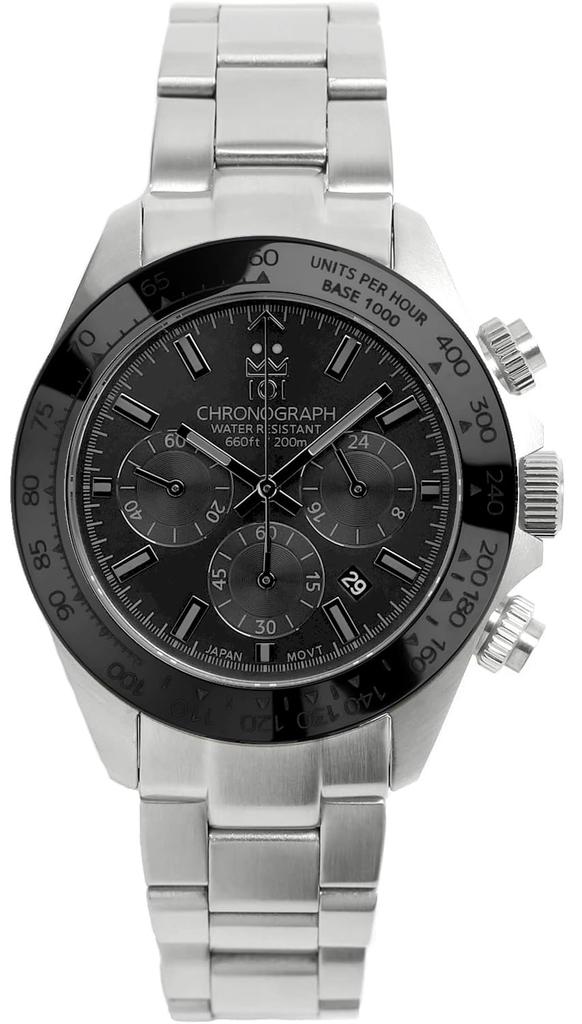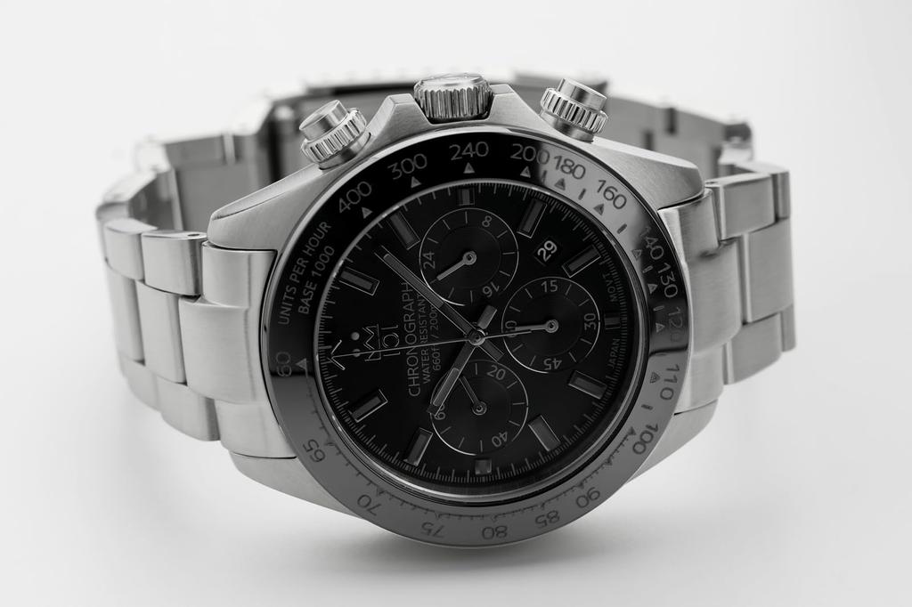 НОВАЯ модель Hyakuichi Chronograph Watch Watch 20 ATM Water Resistant Date Quartz Ceramic Bezel Silver Bracelet x Full Black Face SBB [HYAKUICHI 101]