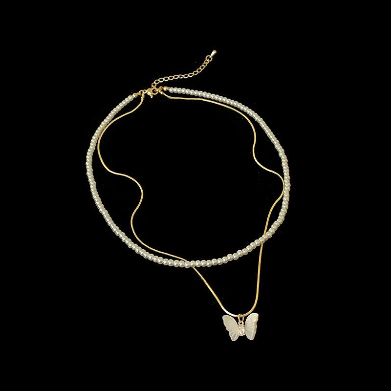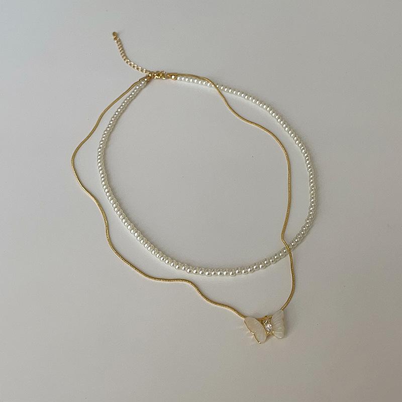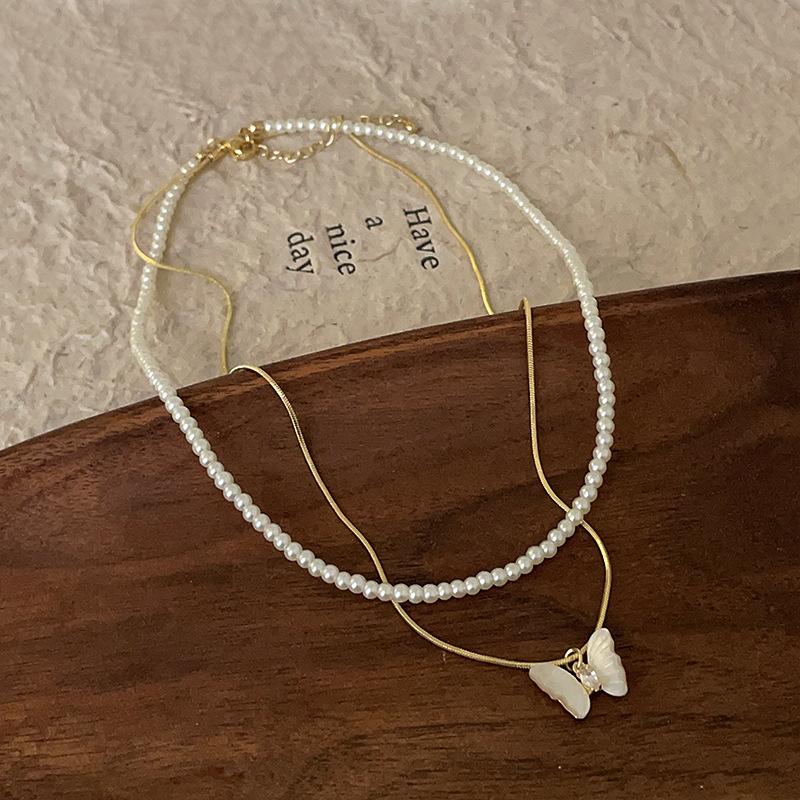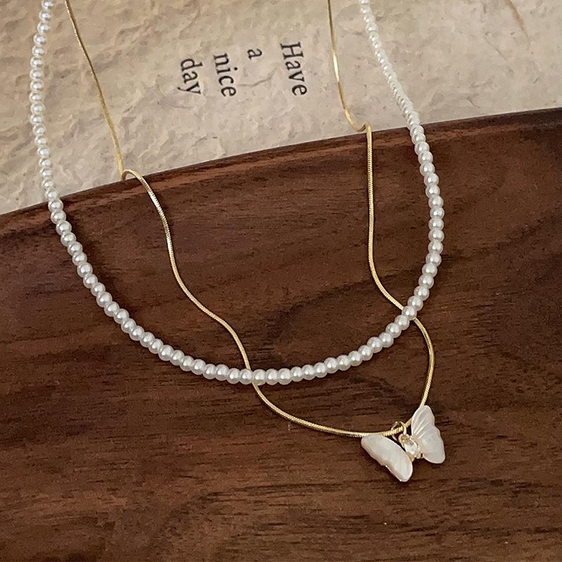 Супер Фея Бабочка Жемчужина Двухслойное Ожерелье Женский Нишевый Дизайн Sense Light Роскошь Элегантная Мода Универсальная Цепочка На Ключицу Цепочка