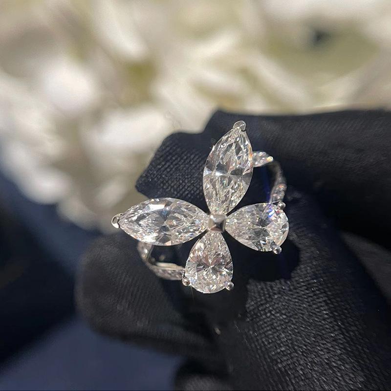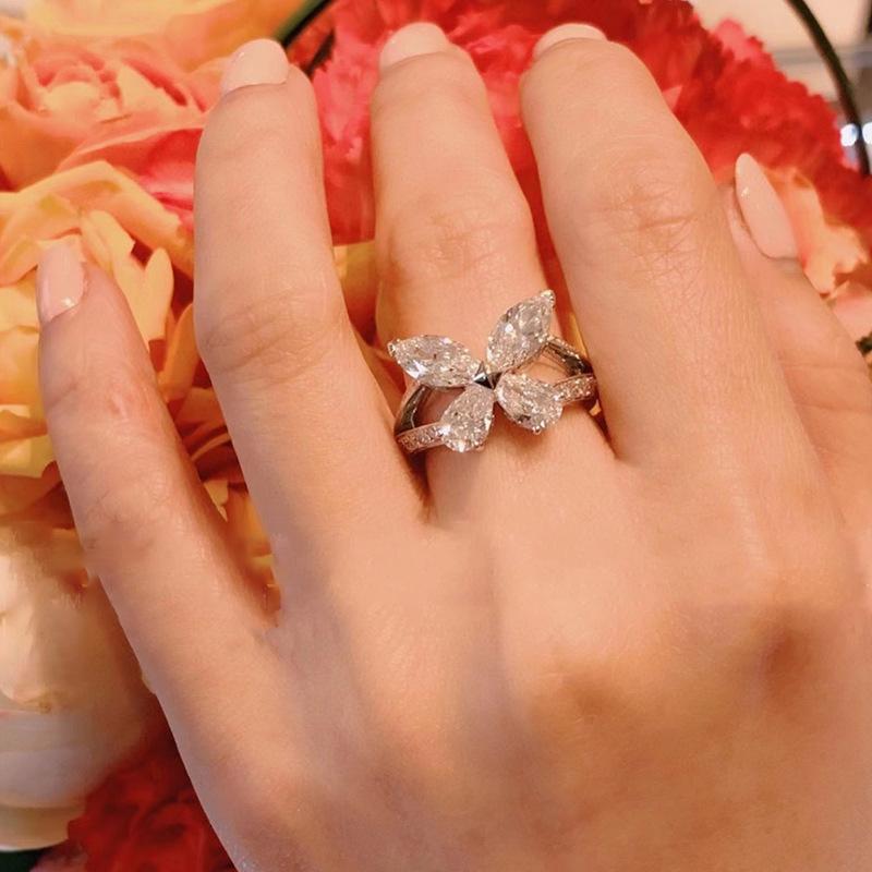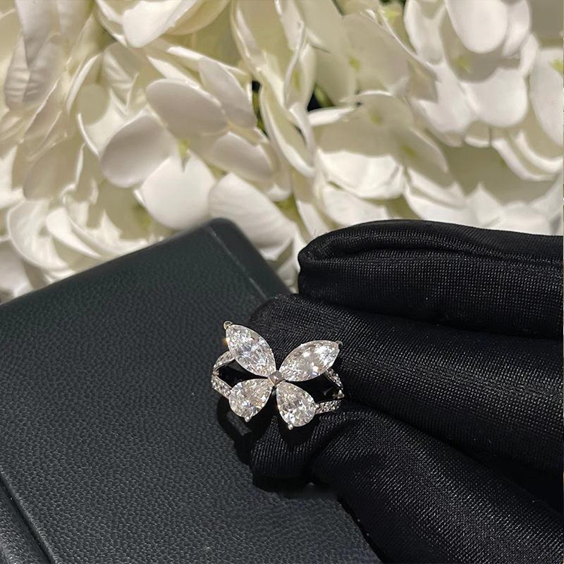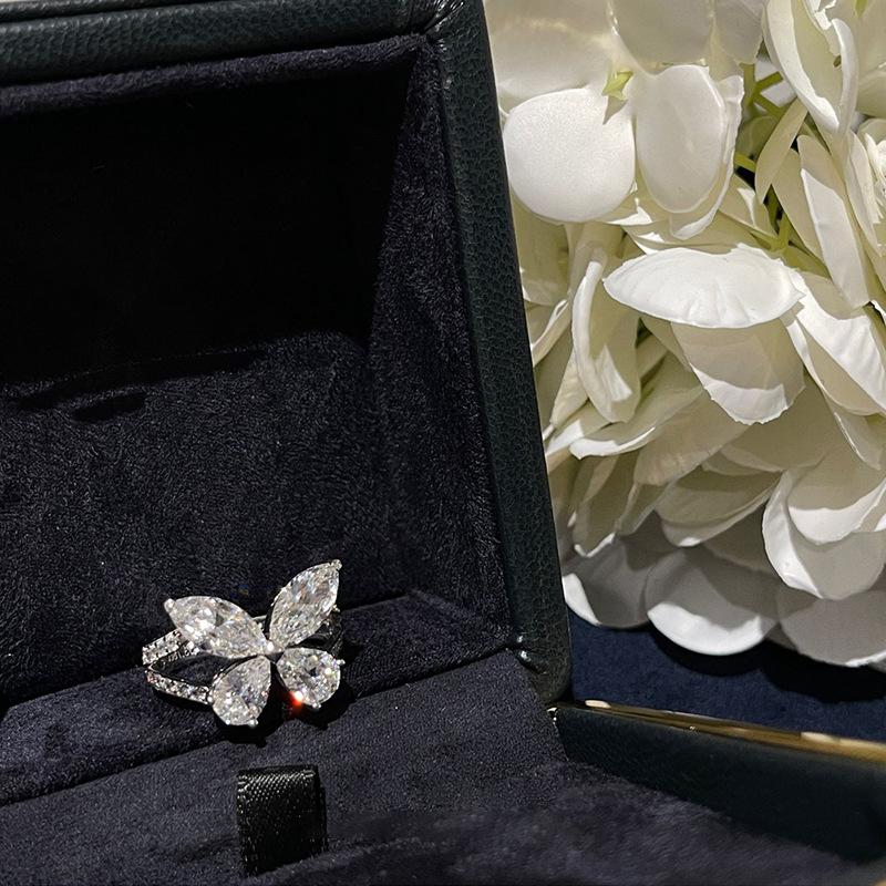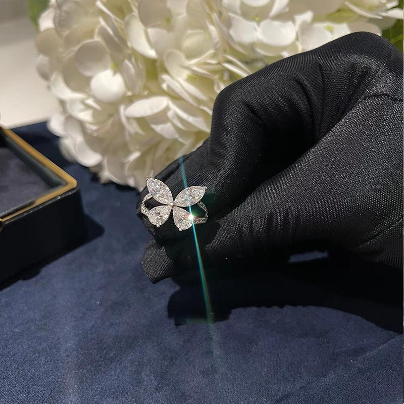 Циркон Капля воды Супер фея Кольцо с бабочкой Женское Нишевый дизайн Чувство Сладкий темперамент Элегантная личность Универсальное кольцо Кольцо