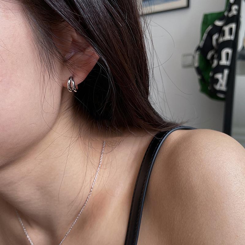 Двухслойные круглые серьги-гвоздики для женщин, холодный ветер, ниша, простая личность, модный трендовый темперамент, универсальные серьги, серьги.