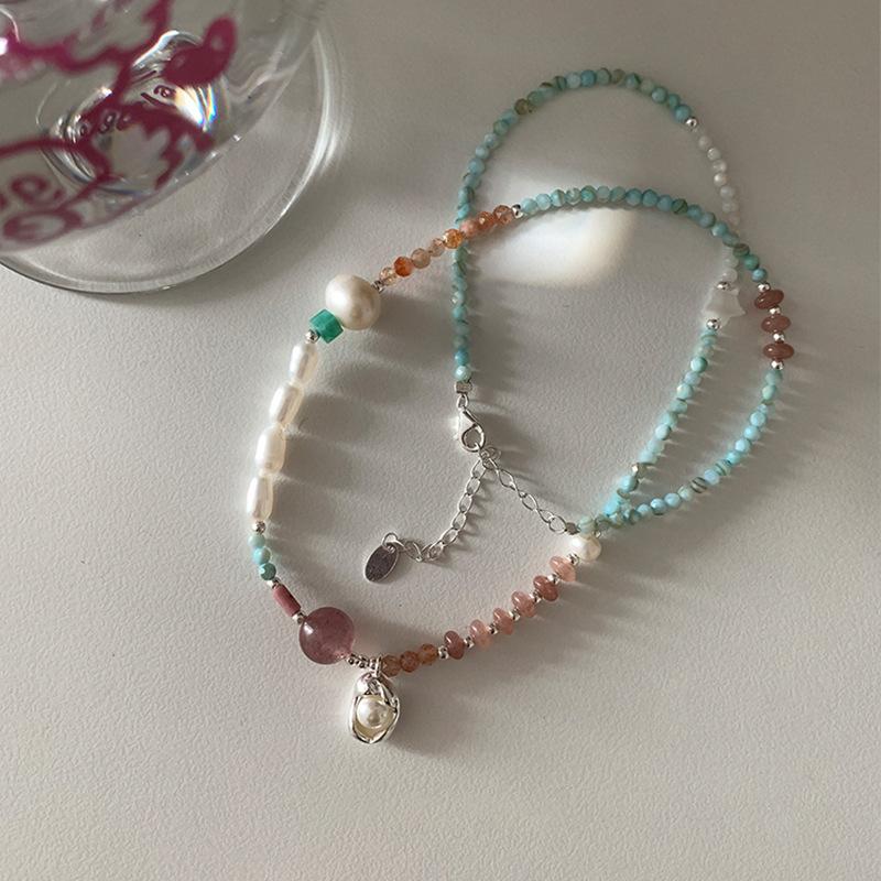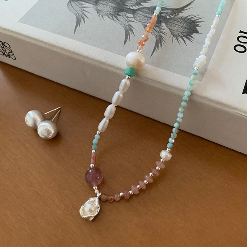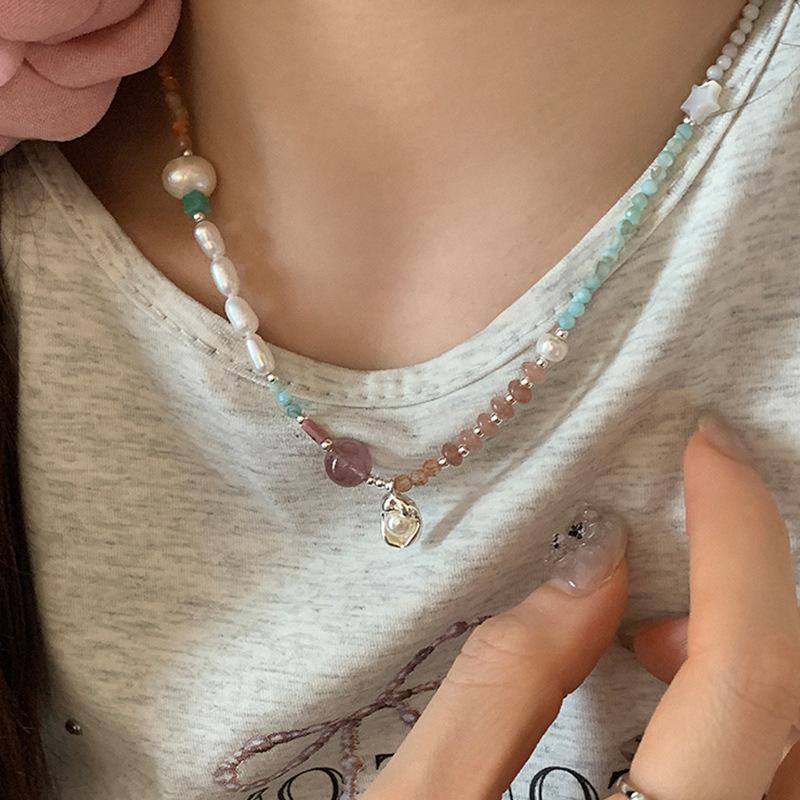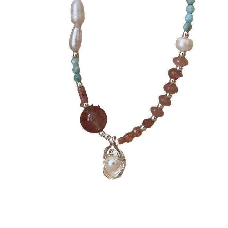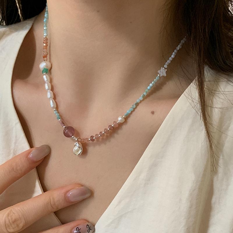 Ретро-национальный стиль, цветной натуральный камень, жемчужное ожерелье с бусинами, женская элегантность, легкая роскошь, высокое чувство, универсальная цепочка на шею, цепочка на ключицу