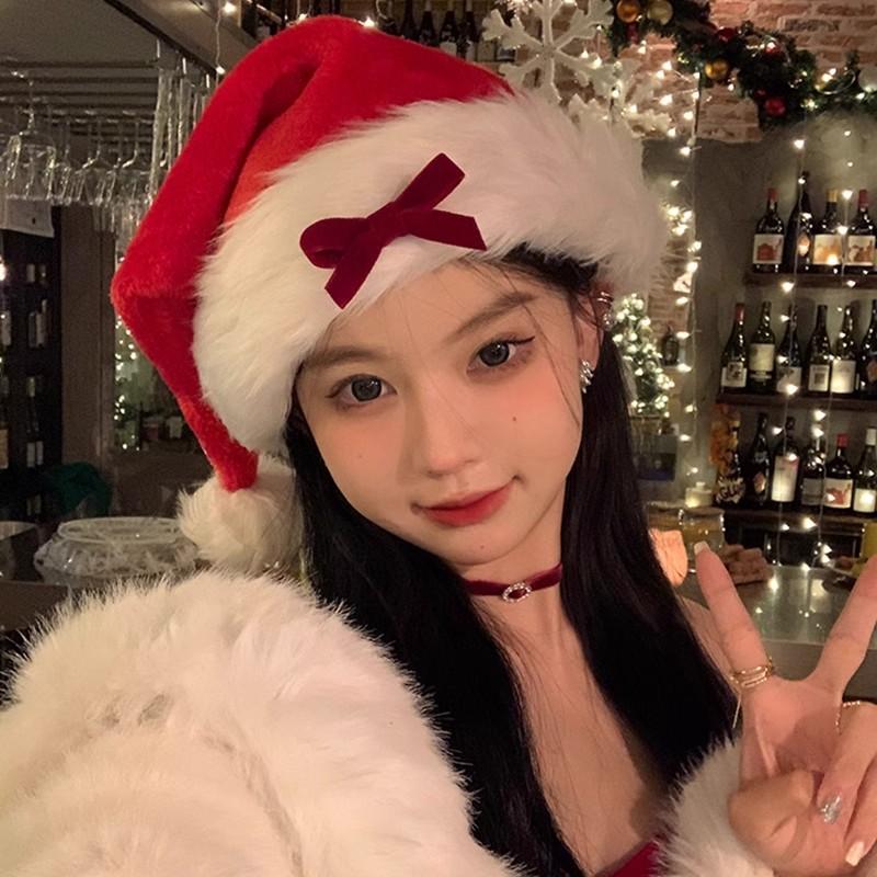 Рождественская декоративная шапка с красным бантом женская зимняя фотография новогодняя атмосфера плюшевая рождественская одежда