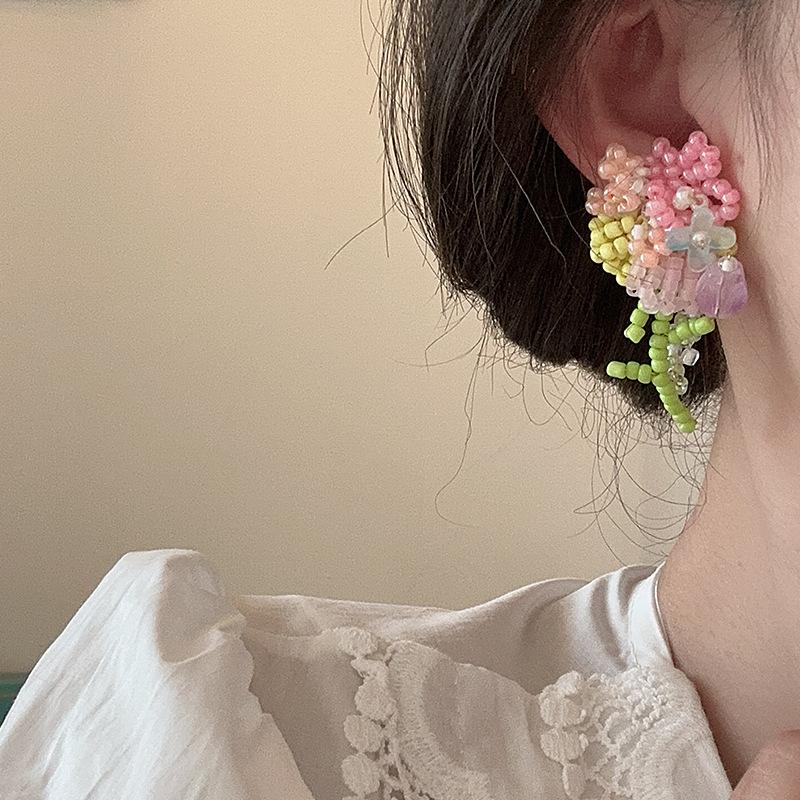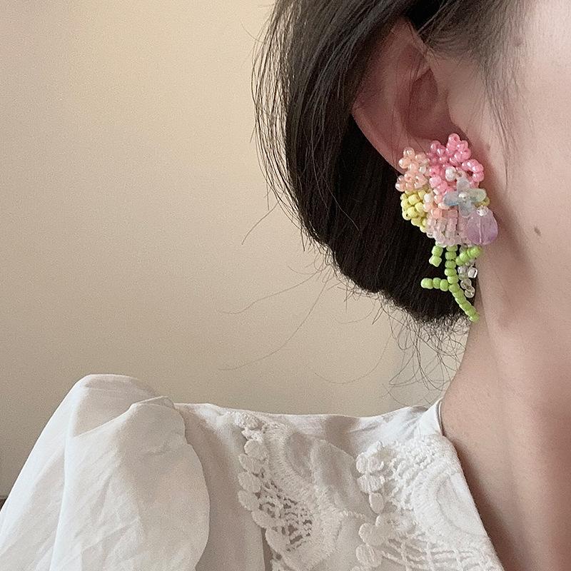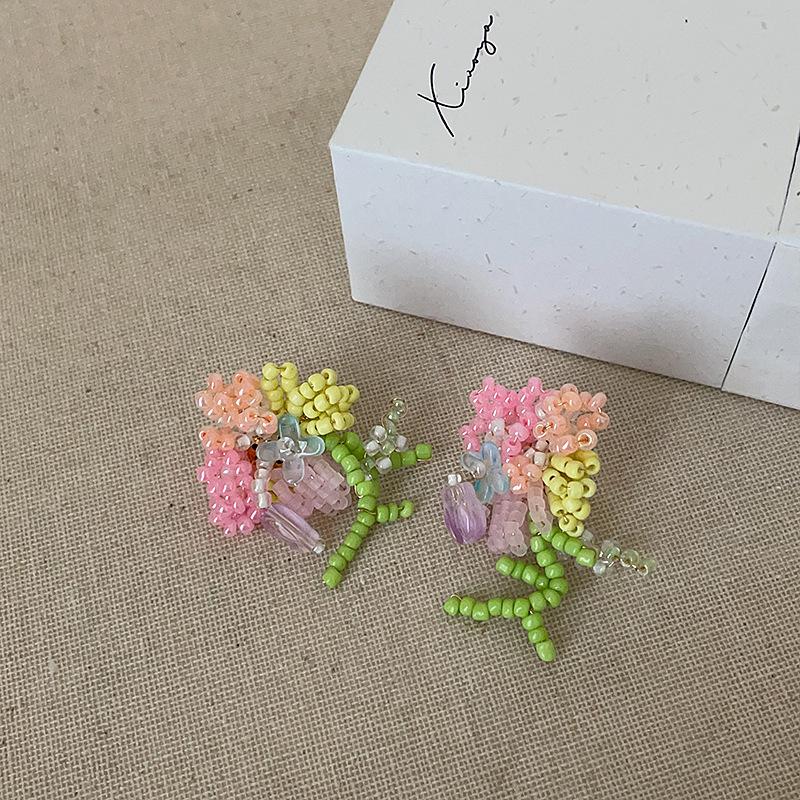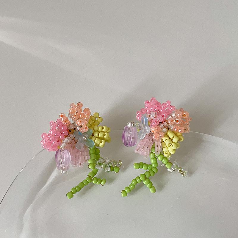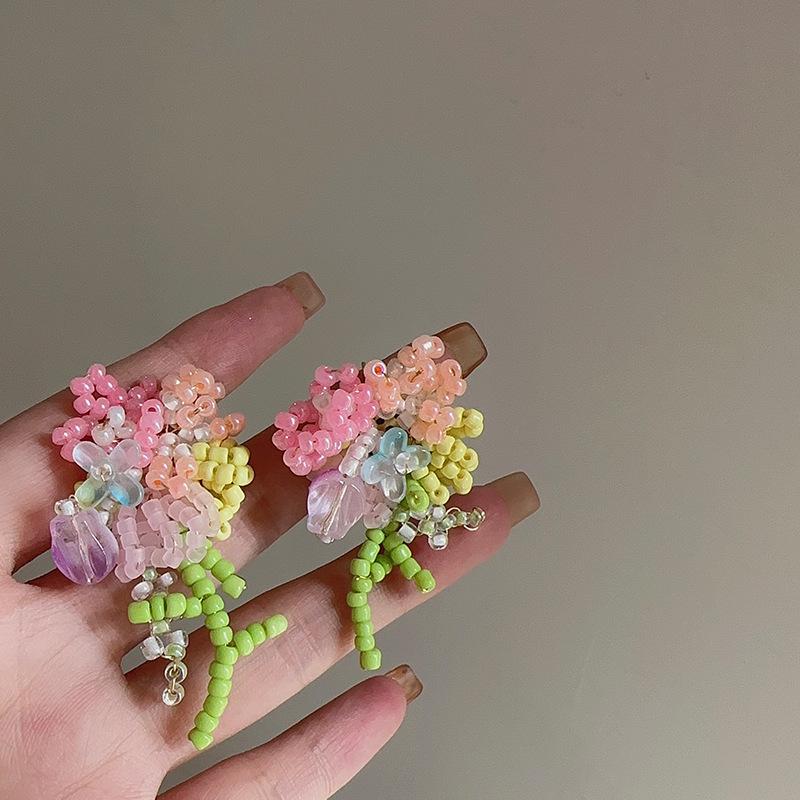 Серьги-гвоздики «Свежий полевой ветер» ручной работы из бисера и цветочного букета, женские летние сладкие нежные серьги Dopamine