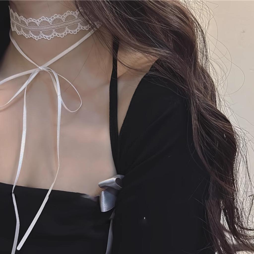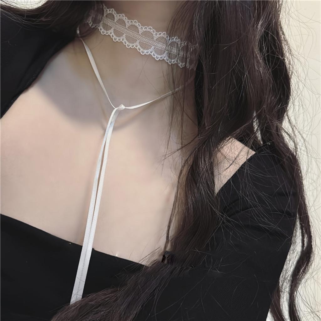 Милая классная девушка белый кружевной чокер бант ключица цепочка двухслойный чистый похоть сладкий воротник женский
