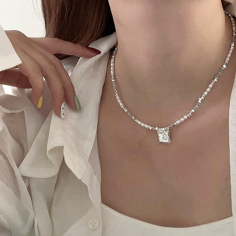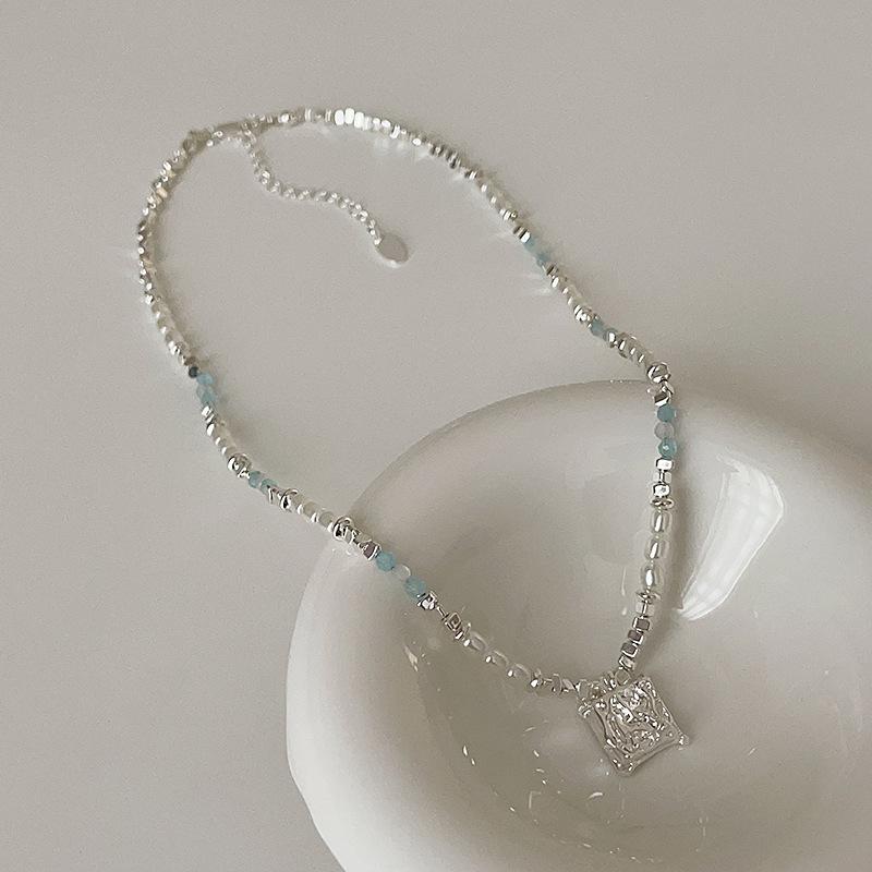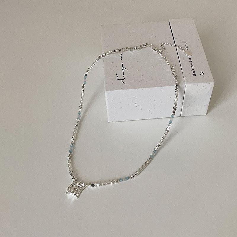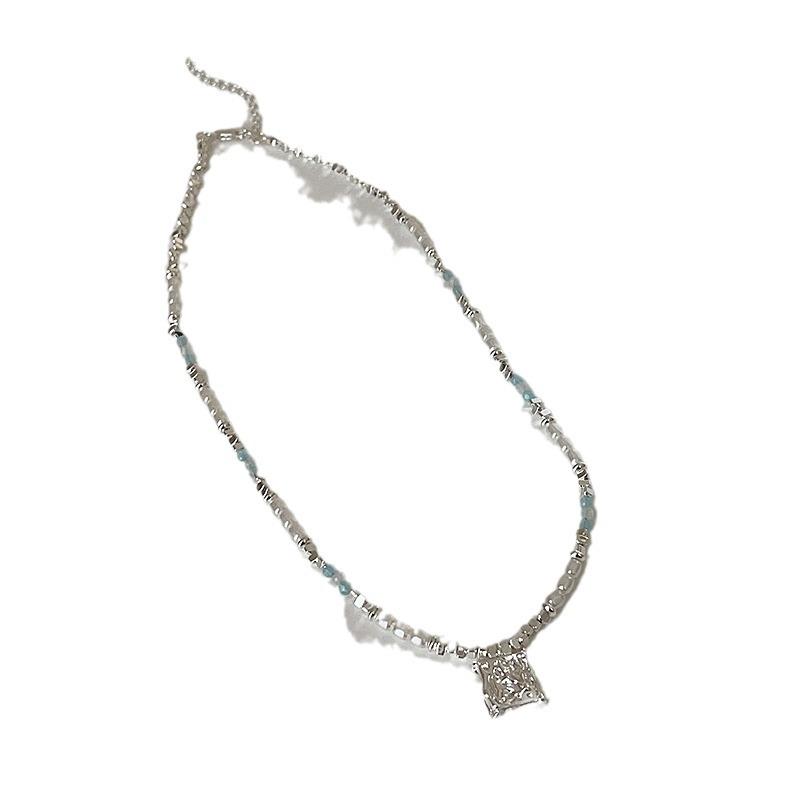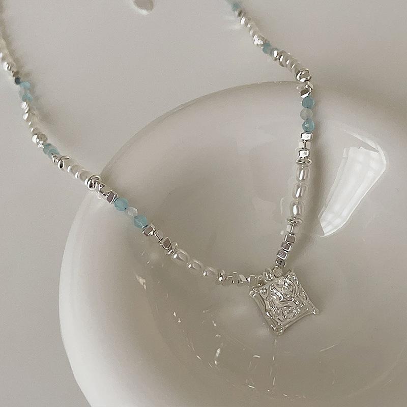 Ожерелье из бисера из синего кристалла и жемчуга, серебряное, женская, нишевая, свежая и модная, универсальная, цепочка на ключицу