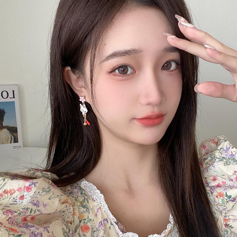 Маленькая лиса с изображением маски демона S925 Серебряные серьги-иглочки для девочки и ветра Милые и симпатичные серьги-лисы в японском стиле с цветами