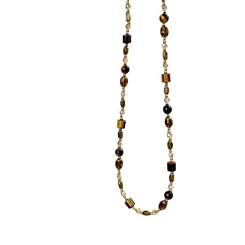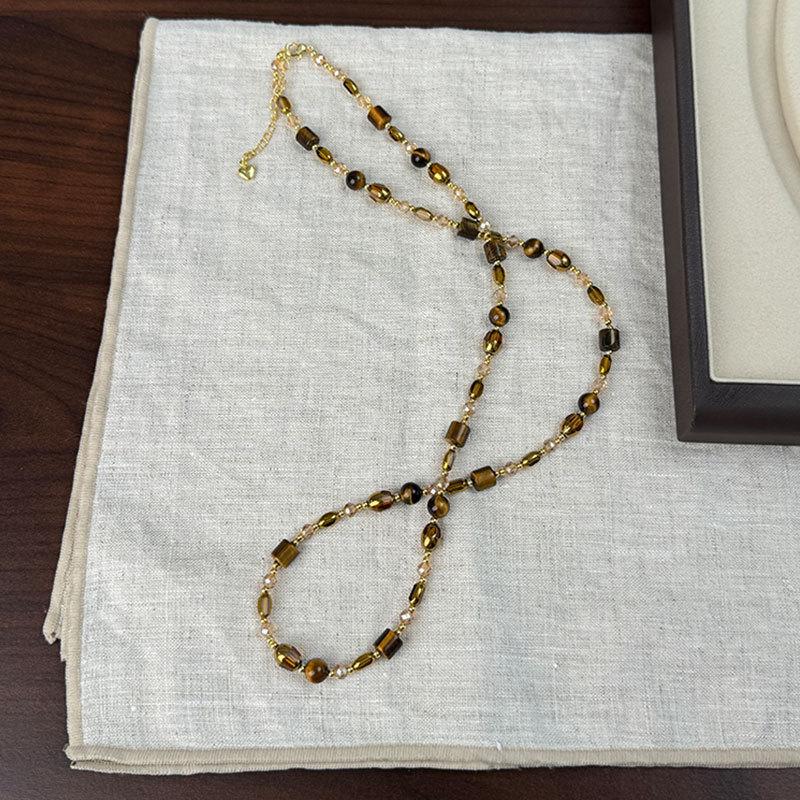 Легкое роскошное высококачественное ожерелье из бисера цвета кофе с тигровым глазом для женщин, ретро-плетение Майяра, элегантная универсальная цепочка на шею, цепочка на свитер