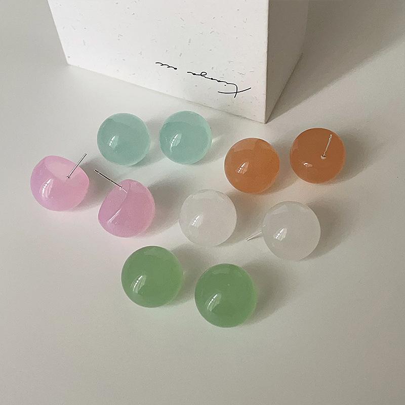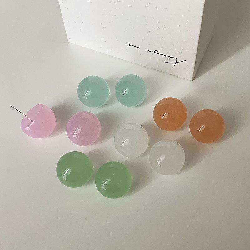 Летние маленькие свежие серьги-гвоздики из смолы с круглыми шариками карамельного цвета, женские милые и симпатичные серьги с индивидуальным стилем, модные серьги с темпераментом