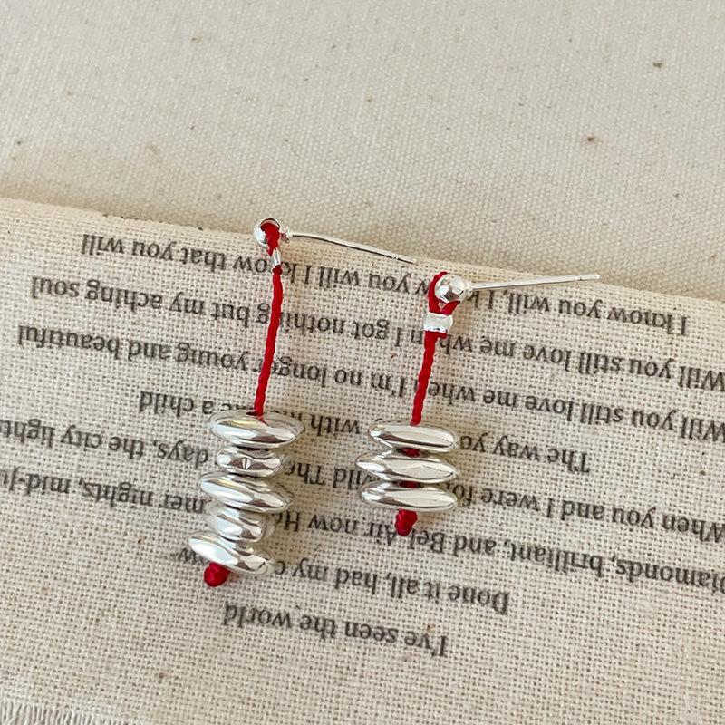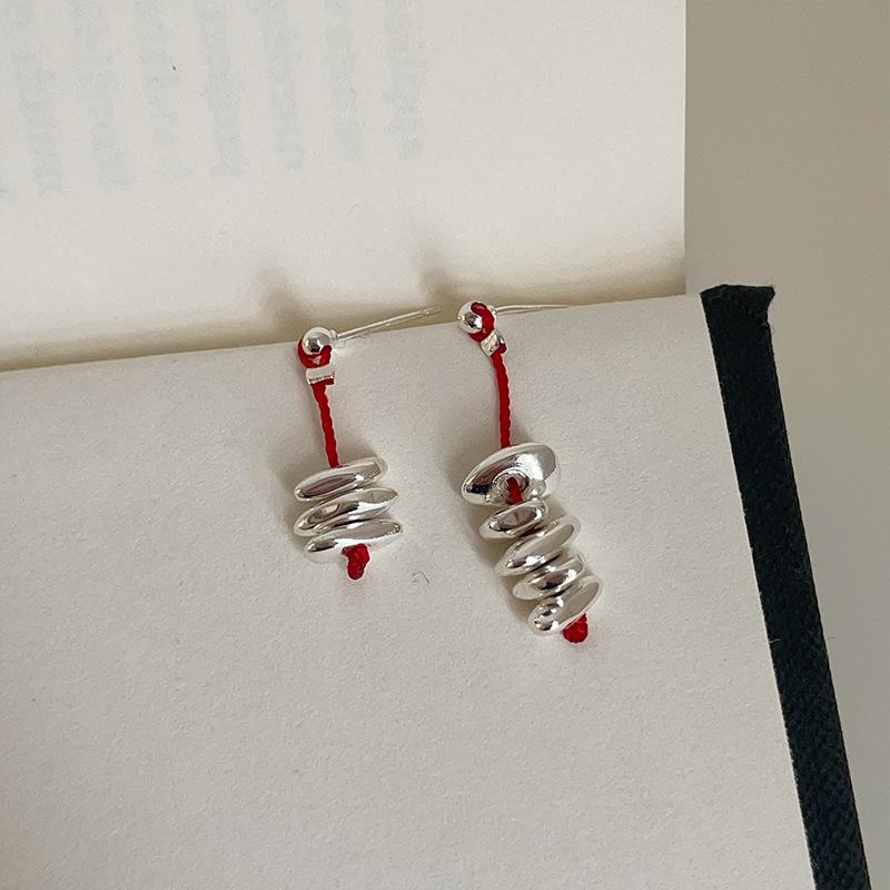 Серьги-гвоздики Design Sense из асимметричного красного веревочного ломаного серебра, женские, нишевые, индивидуальные, уникальные, изысканные, простые, универсальные