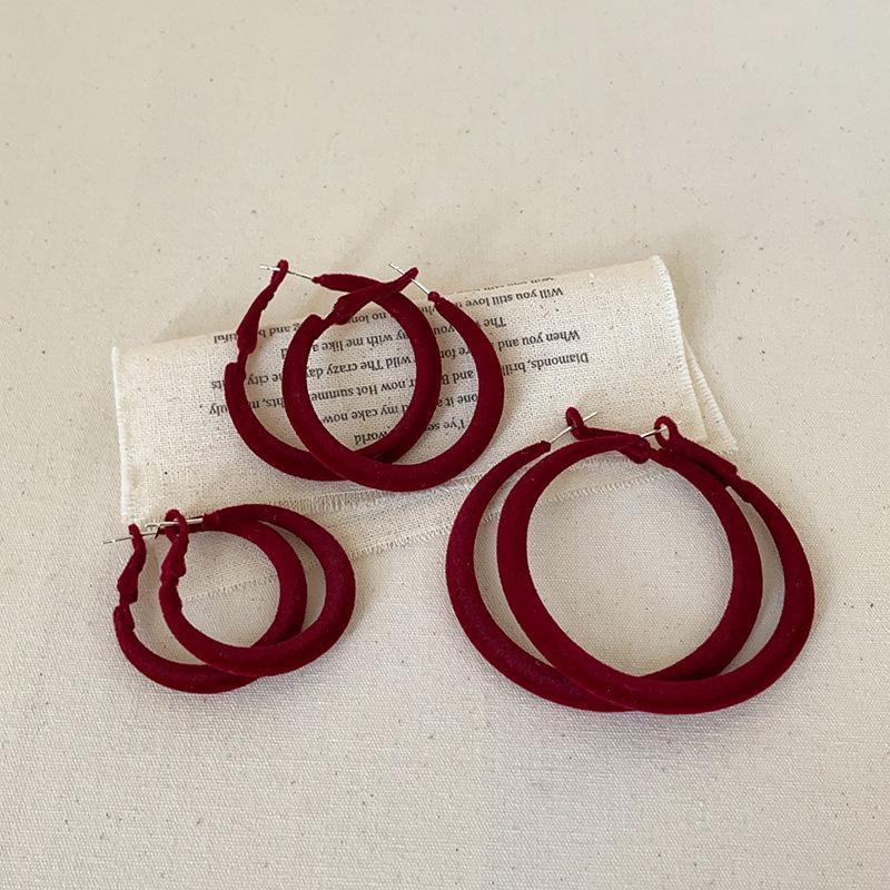 Осенние и зимние серьги цвета красного вина из бархата, женские легкие, роскошные, ретро, элегантные, модные, трендовые, универсальные серьги для поездок на работу