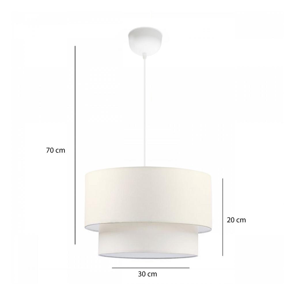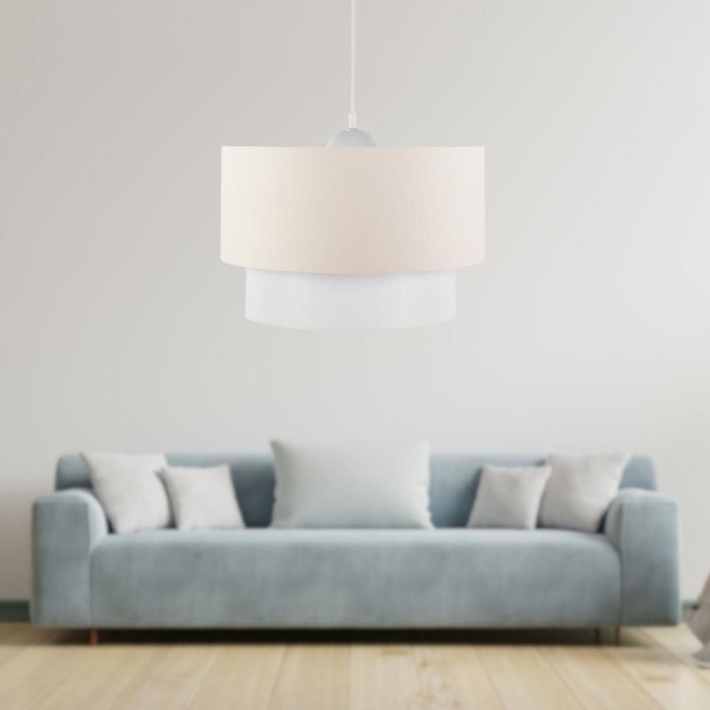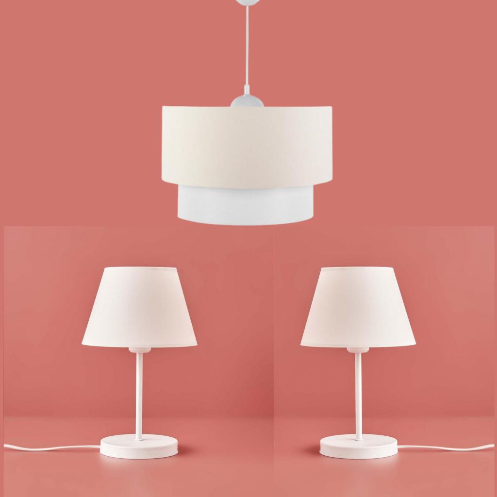 Art Beyaz Metal Gövdeli Üçlü Avize ve Abajur Seti Krem Kumaş
