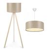 Art Pasta Sarkıt ve Ahşap Ayaklı Abajur Antrasit Kumaş Üçlü Avize Seti Yatak Odası Salon