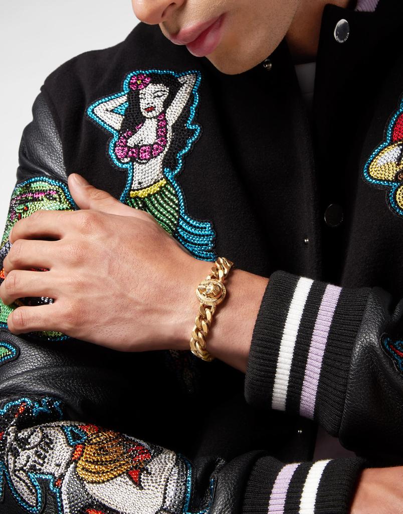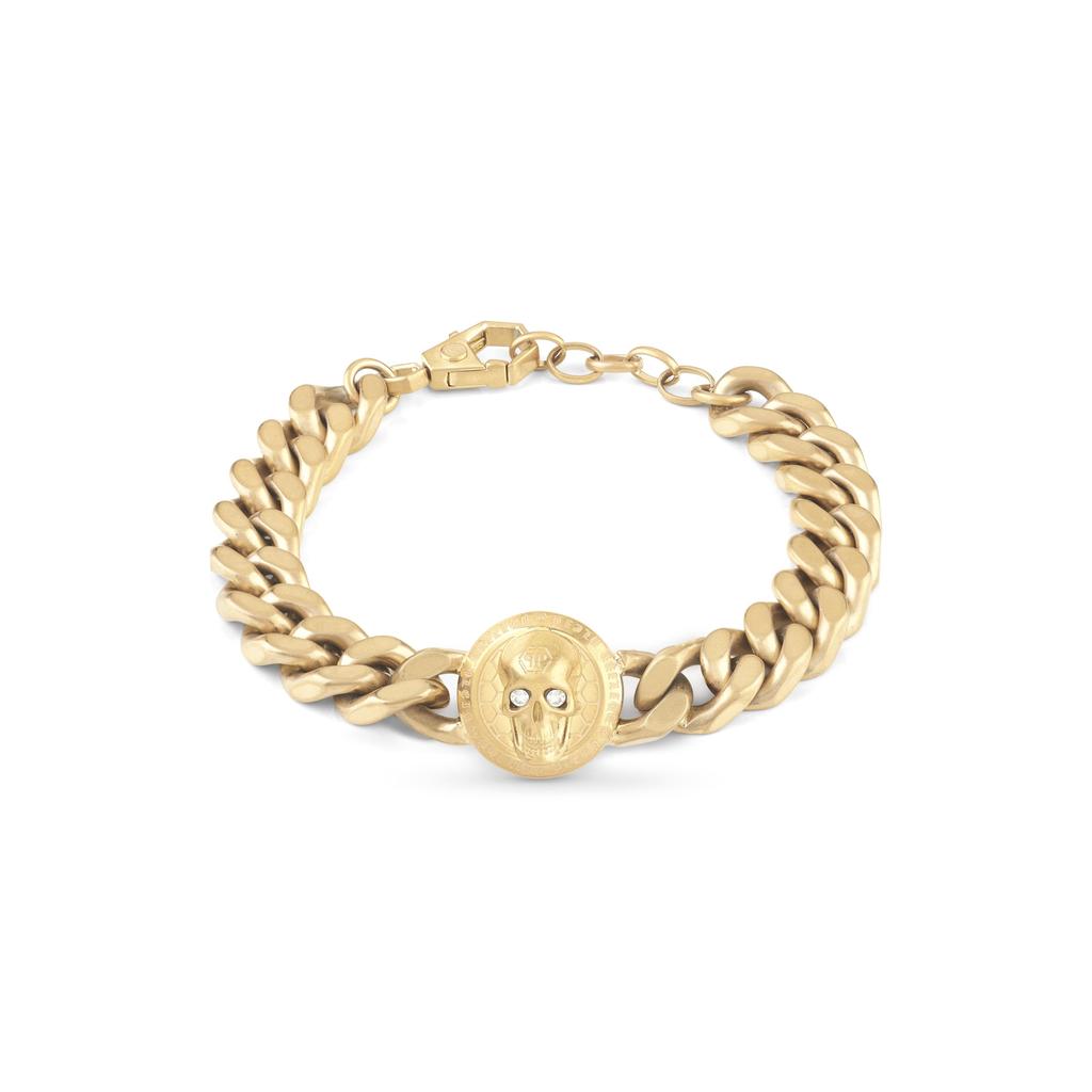 Plein Accessories Браслет 3D ЧЕРЕП МОНЕТА 3D ЧЕРЕП МОНЕТА PJ8AA14BU 3D ЧЕРЕП МОНЕТА МАТОВОЕ ЗОЛОТОЕ БРАСЛЕТ GOURMETTE С КРИСТАЛЛАМИ Золото Нержавеющая сталь [Philip