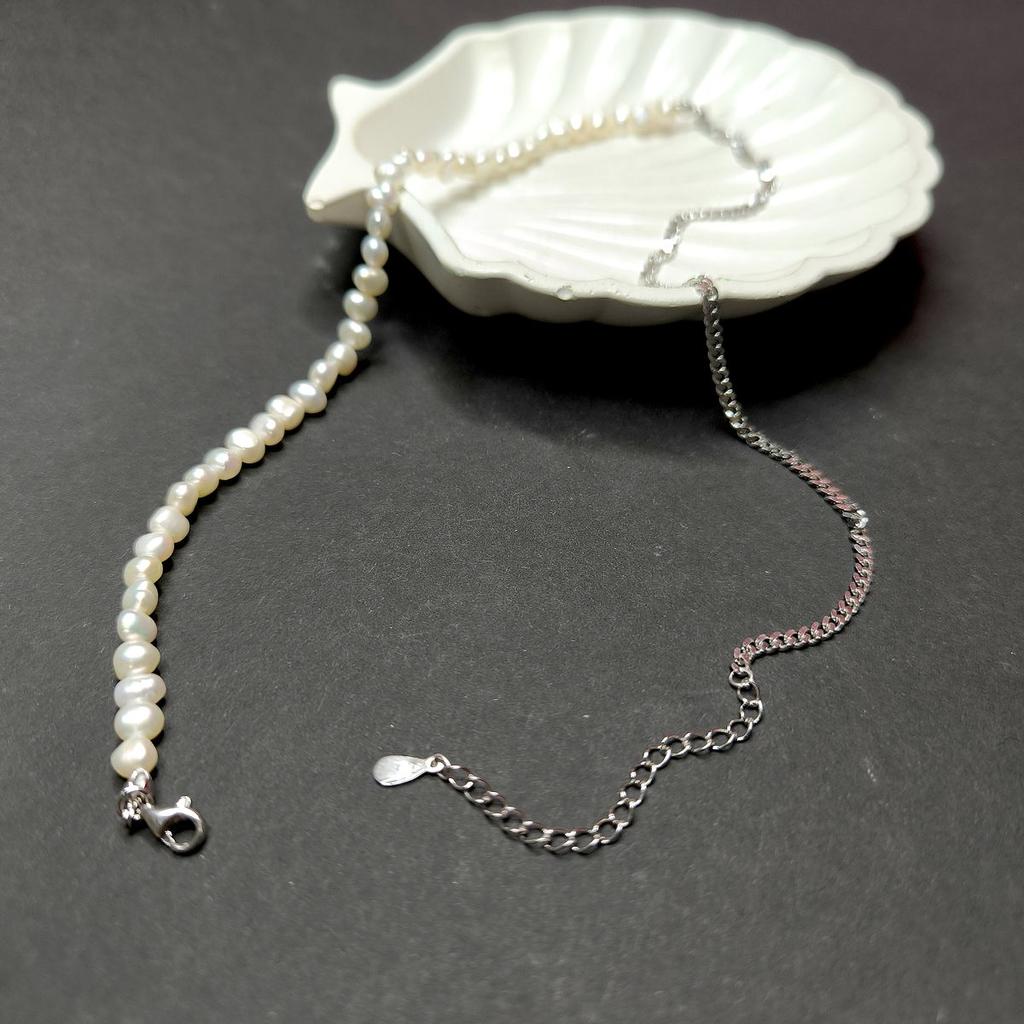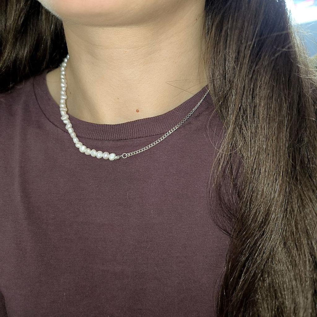 серебряное колье с натуральным жемчугом барочным, вес изделия 9,88 гр