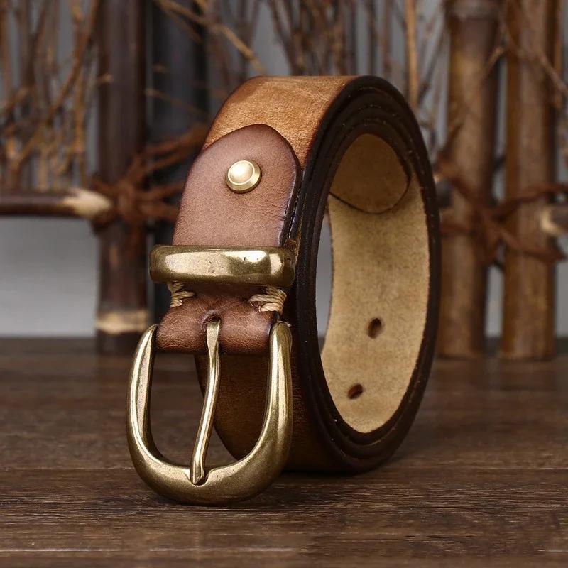 3,3 см модный мужской ремень из натуральной кожи с пряжкой в стиле ретро, корейский, из натуральной коровьей кожи, джинсовые ремни для женщин, роскошный дизайнерский ковбой
